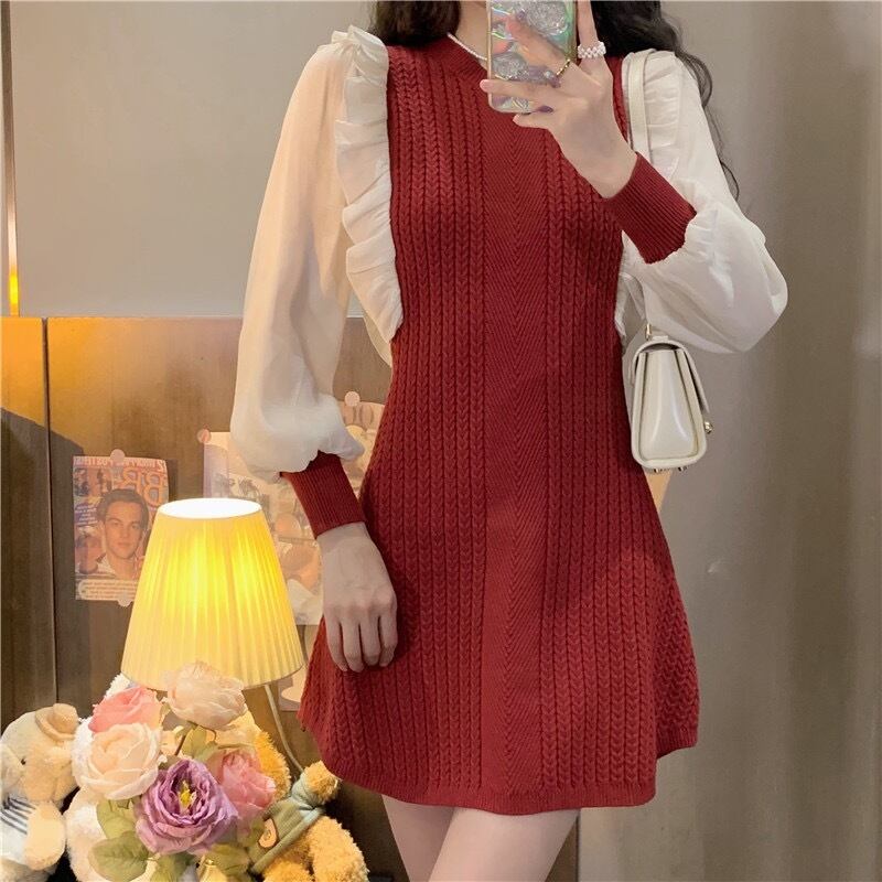 ワンピース レディース ショート丈 ショート丈スカート ニット ニットスカート ニットワンピース レッド 赤 ブラック 黒 ベージュ 長袖 新作カラー プルオーバー Aラインスカート Aライン ハイウエスト レトロ ストレート ゆったり ゆる 無地 キュート かわいい フェミニン 大人可愛い セクシー 大人女子 おしゃれ クール 個性派 ガーリー 存在感 海外 インポート 10代 20代 カジュアル お出かけ デート 女子会 韓国ファッション 人気 トレンド ゆるふわ 脚長 美脚 オルチャン