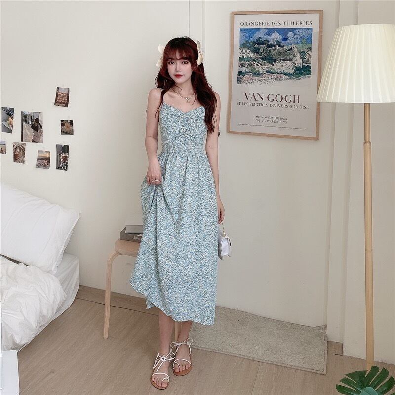 ワンピース レディース ミドル丈スカート 小花 スモールフラワー 花柄 フラワープリント ミドル丈ワンピース ノースリーブ ブルー 青 イエロー 黄色 ピンク サスペンダー プルオーバー ハイウエスト Aラインスカート レトロ ストレート ゆったり かわいい フェミニン 大人可愛い セクシー 大人女子 おしゃれ クール 個性派 ガーリー 存在感 海外 インポート 10代 20代 モテ イベント お出かけ デート 女子会 韓国ファッション 人気 トレンド ゆるふわ 韓国コーデ 簡単コーデ オルチャン