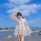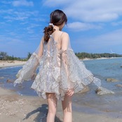 ワンピース レディース ドレス 衣装 キャバ ワンピ Aラインドレス ミニ ミニ丈 袖あり 9分丈 長袖 フレアスリーブ ラウンドネック フレア Aライン レース 刺繍 フリル 透け感 シースルー 可愛い 大人可愛い おしゃれ お洒落 エキゾチック フェミニン 大人女子 ラブリー キュート ガーリー 個性的 存在感 エレガント 主役級 S M L アプリコット 花柄 ドット柄 夏 10代 20代 パーティー イベント リゾート 旅行 海 プール ステージ キャバクラ インスタ映え