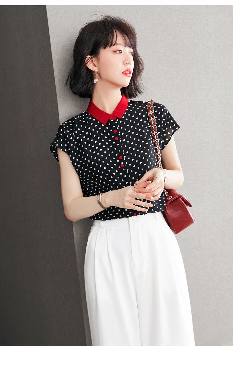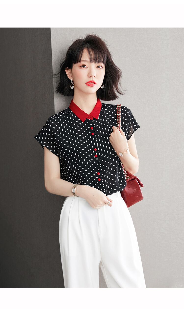 トップス レディース シャツ 水玉 ドット柄 黒 ブラック 半袖 襟付き ボタン かわいい 大人可愛い きれいめ シンプル カジュアル 大人 上品 おしゃれ お洒落 かっこいい 大人女子 キュート ガーリー ルーズ 個性的 クール モード系 主役級 存在感 S M L XL 2XL 大きいサイズもあり 春 夏 10代 20代 30代 40代 オフィス ビジネス OL 通勤 学生 通学 デート お出かけ 公園デビュー 女子会 アウトドア 旅行 着回し 普段使い 重ね着 韓国系 オルチャン ファッション