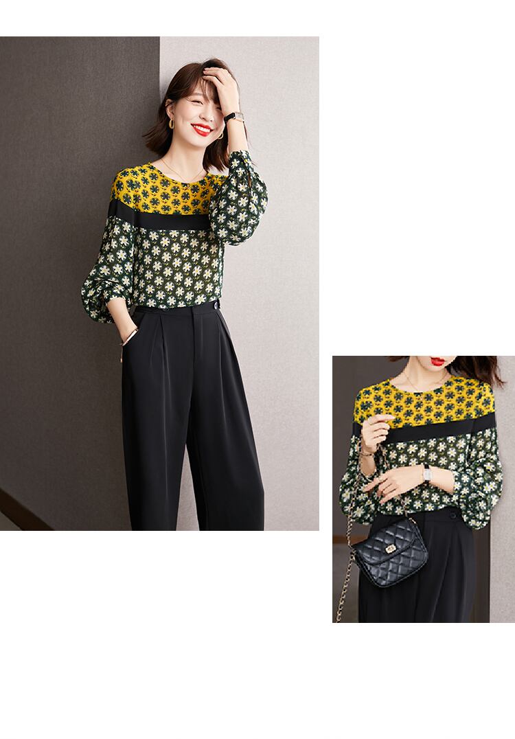 フラワー柄のシフォンブラウス。