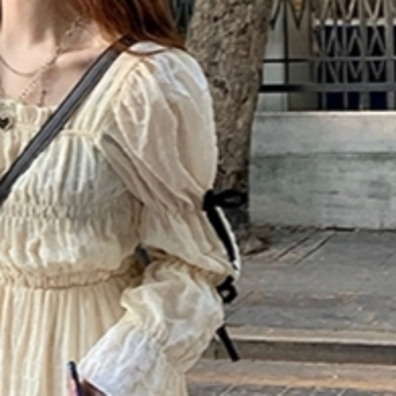 ワンピース レディース ロングスカート ロング丈 袖あり 長袖 マムルークスリーブ マリースリーブ ベルシェイプカフス スクエアネック 襟なし シャーリング ギャザー 透け感 リボン アプリコット かわいい 大人可愛い 大人 大人女子 きれいめ おしゃれ お洒落 ラブリー キュート ガーリー フェミニン 10代 20代 30代 通勤 学生 通学 デート お出かけ 女子会 休日 普段使い カジュアル こなれ感 抜け感 ルーズ ゆったり ゆる ふんわり 上品 エレガント 優雅 可憐 パーティー イベント