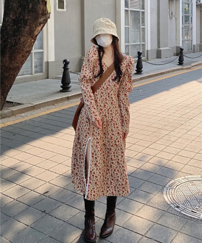 ワンピース レディース ロングスカート フローラル 花柄 小花柄 フラワー ボタニカル 人気 フレアスカート ロング丈 ミモレ丈 袖あり 長袖 スクエアネック 襟なし サイドスリット スリット レース ベルスリーブ アプリコット かわいい 大人可愛い 大人 大人女子 きれいめ おしゃれ お洒落 ラブリー キュート ガーリー フェミニン 10代 20代 30代 通勤 学生 通学 デート お出かけ 女子会 休日 普段使い カジュアル こなれ感 抜け感 ラフ ルーズ ゆる セクシー 華やか パーティー イベント