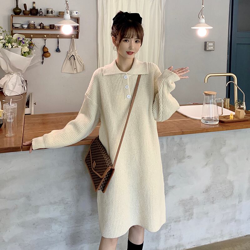 襟が付いてシャツっぽいニットワンピです。