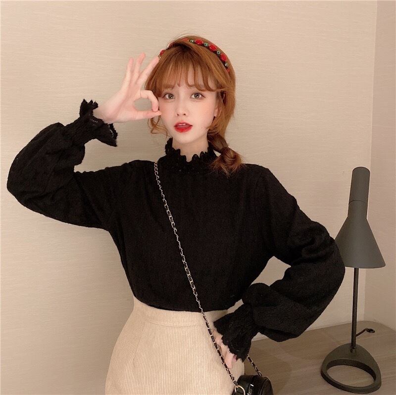 トップス レディース シャツ 長袖 袖あり ランタンスリーブ プルオーバー タートルネック ハイネック 無地 レース 秋 冬 レトロ ゆったり かわいい フェミニン 大人可愛い セクシー 大人女子 おしゃれ クール 個性派 ガーリー 存在感 海外 インポート アプリコット ブラック 黒 10代 20代 学生 通学 OL 通勤 デート 透け感 モテ イベント お出かけ デート 女子会 韓国ファッション 人気 トレンド ゆるふわ 韓国コーデ 簡単コーデ オルチャン こなれ感 メンズライク コーデ スタイル