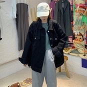 アウター レディース デニムジャケット ブルー 青 ブラック 黒 ジャケット 長袖 袖あり ラグランスリーブ ポロカラー 襟あり ポケット ボタン 前開き 無地 春 レトロ ゆったり ゆる かわいい フェミニン 大人可愛い セクシー 大人女子 おしゃれ クール 個性派 ガーリー 存在感 海外 インポート 10代 20代 S M L XL 学生 通学 OL 通勤 お出かけ カジュアル 女子会 韓国ファッション 人気 トレンド 韓国コーデ 簡単コーデ オルチャン こなれ感 メンズライク コーデ スタイル