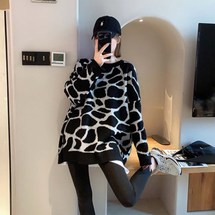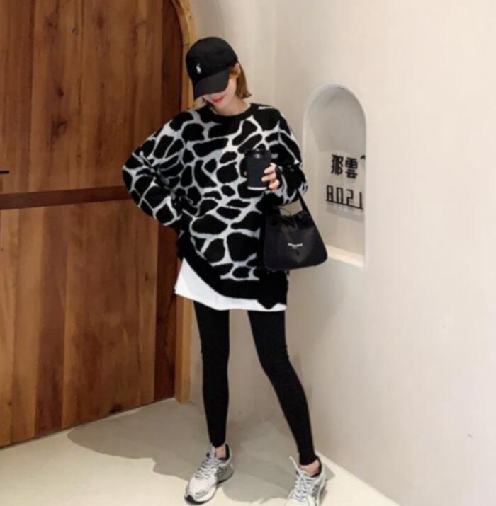 トップス レディース セーター 袖あり 長袖 襟なし Uネック ラウンドネック モノトーン 黒 ブラック 白 ホワイト アニマル柄 キリン ジラフ かわいい 大人可愛い 大人 大人女子 きれいめ おしゃれ お洒落 シンプル ラブリー キュート ガーリー フェミニン 10代 20代 30代 学生 通学 デート お出かけ 女子会 休日 普段使い カジュアル こなれ感 抜け感 ラフ ルーズ ゆったり ゆる 大きめ ぶかぶか 体系カバー インスタ映え インパクト パーティー イベント 防寒 暖かい あったか