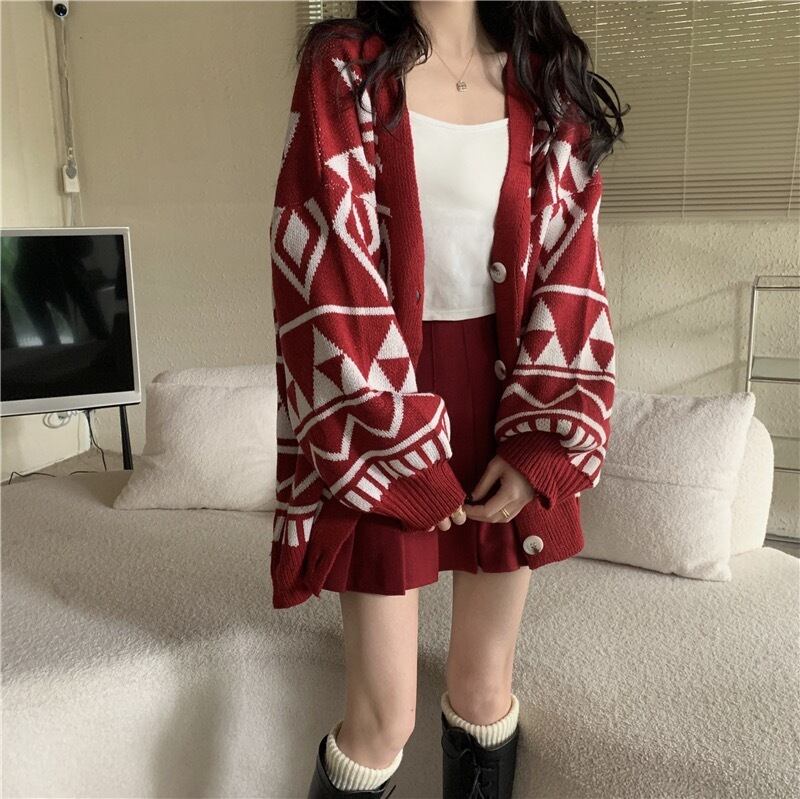 トップス レディース カーディガン ニット ニットカーディガン 長袖 袖あり ボタン 前開き Vネック ストレート レトロ ルーズ ゆったり ゆる ラフ 可愛い フェミニン 大人可愛い 大人女子 おしゃれ クール 個性派 ガーリー ラブリー キュート カジュアル 存在感 海外 インポート 春 冬 レッド ブラック 黒 10代 20代 30代 ワンサイズ お出かけ 女子会 休日 お泊まり 旅行 韓国ファッション 人気 トレンド 韓国コーデ 簡単コーデ オルチャン 柄 メンズライク コーデ スタイル