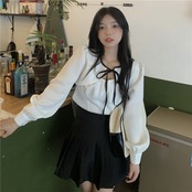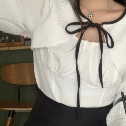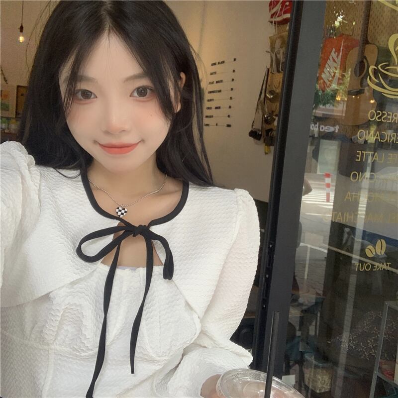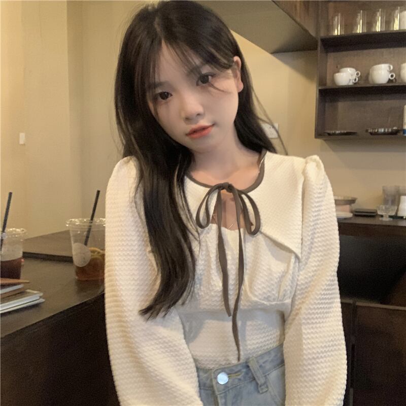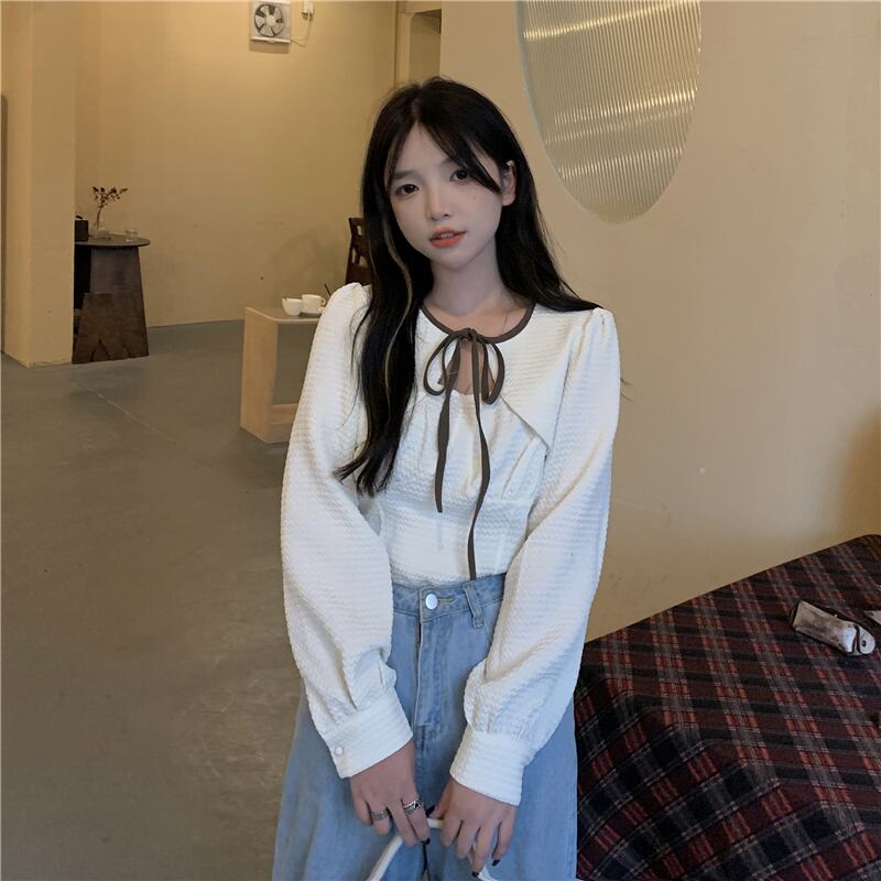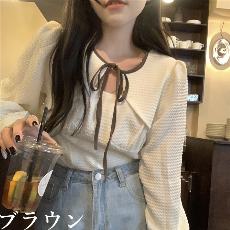 トップス レディース 女性用 長袖 ワッフル 生地 ライン シャツ ブラウス 丸襟 ボタン カフスボタン 重ね バルーン袖 フレア袖 レトロ 大人可愛い カジュアル 大人カジュアル かわいい ガーリー おしゃれ かっこいい 大人女子 シック メンズライク レディライク ワンサイズ リボン 単色 白 ホワイト ベージュ 黒ブラック 茶 ブラウン 秋 冬 お出かけ デート 休日 韓国ファッション トレンド OL 学生 通勤 通学 10代 20代 30代 個性的 人気 シンプル ラフ こなれ感 ゆったり