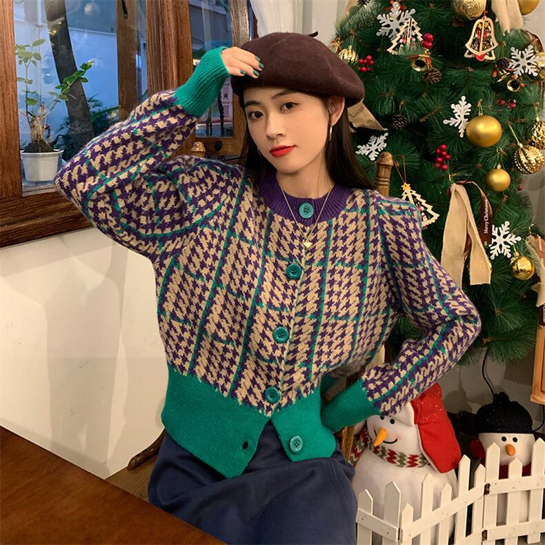 トップス レディース カーディガン ニット ニットカーディガン 長袖 袖あり スクープネック ボタン 前開き 襟なし ストレート 千鳥格子 お洒落 おしゃれ 可愛い かわいい フェミニン 大人可愛い 大人女子 おしゃれ クール 個性的 ガーリー ラブリー キュート 抜け感 とろみ感 海外 インポート 冬 グリーン 緑 ブルー 青 イエロー 黄色 10代 20代 30代 学生 通学 OL 通勤 S M L XL 韓国ファッション 人気 トレンド 韓国コーデ 簡単コーデ オルチャン コーデ スタイル