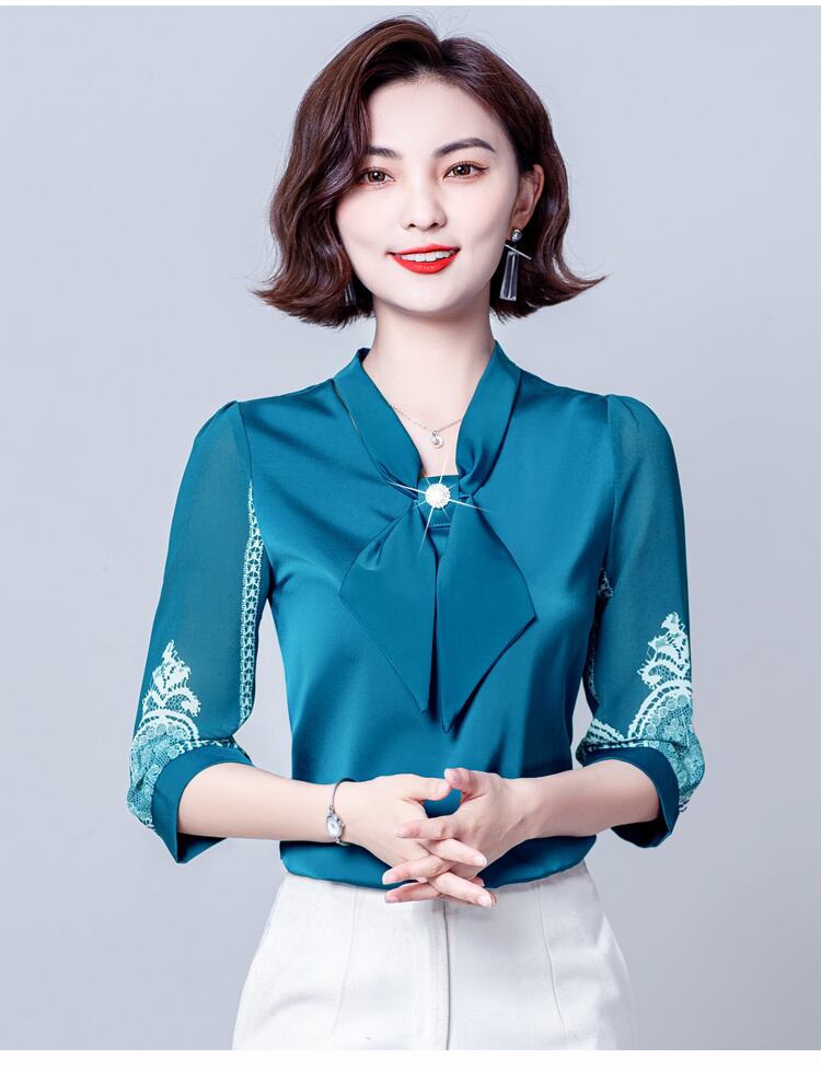 トップス レディース ブラウス 白トップス 袖あり 7分袖 Vネック スカーフ襟 刺繍 大人可愛い きれいめ シンプル 大人 上品 お洒落 大人女子 クール フォーマル エレガント M L XL 2XL 3XL 4XL 大きいサイズあり 白 ホワイト 黒 ブラック 赤 レッド 青 ブルー ベージュ 入学式 入園式 卒業式 卒園式 二次会 謝恩会 20代 30代 40代 50代 オフィス ビジネス OL 通勤 デート お出かけ 女子会 パーティー 普段使い モテ 高見え プチプラ 海外 インポート