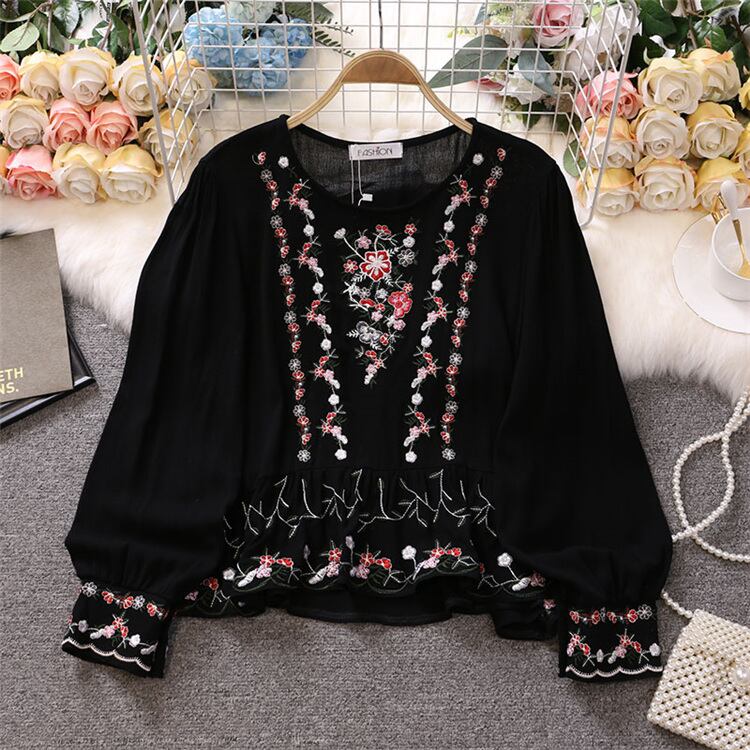 トップス レディース ブラウス 新作 アジアン 白 ホワイト 黒 ブラック 赤 レッド ネイビー 花柄 フラワー 刺繍 パフ袖 人気 長袖 ボリューム袖 パフスリーブ ラウンドネック 可愛い 大人可愛い カジュアル レトロ おしゃれ お洒落 かわいい エスニック フェミニン キュート ガーリー ルーズ 存在感 主役級 春 秋 10代 20代 30代 学生 通学 デート お出かけ 公園デビュー パーティー イベント 旅行 着回し 普段使い お揃い 双子 楽ちん 体系カバー インスタ映え 海外 インポート