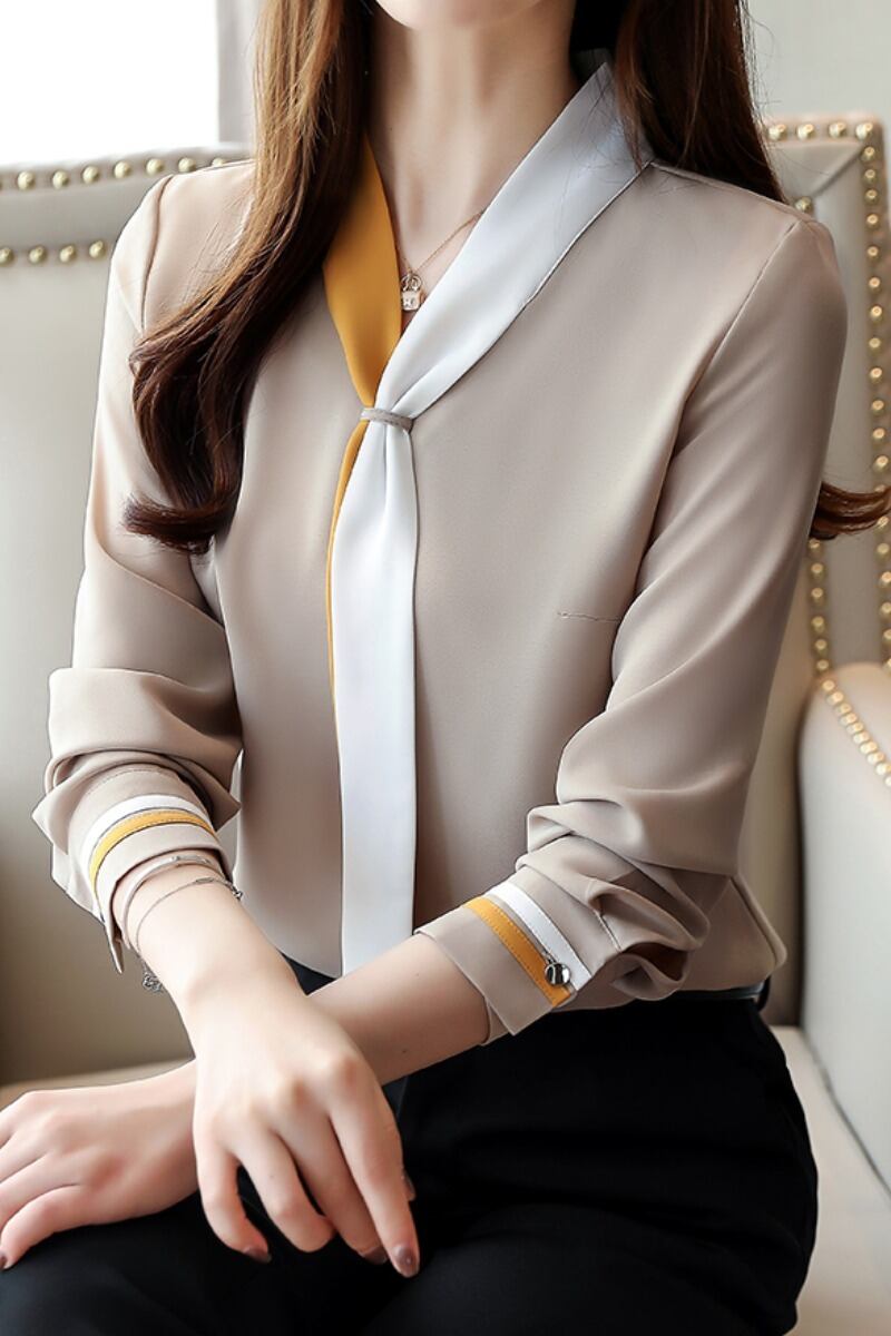 トップス レディース ブラウス 新作 スカーフ付き 海外デザイン 袖あり 長袖 Vネック ボウタイ ホワイト 青 ブルー ベージュ バイカラー 無地 可愛い 大人可愛い きれいめ シンプル 春 夏 秋 カジュアル 大人 上品 おしゃれ お洒落 かわいい エレガント 清楚 S M L XL 2XL 入学式 入園式 謝恩会 10代 20代 30代 40代 オフィス ビジネス OL 通勤 学生 通学 デート お出かけ 女子会 旅行 着回し 普段使い 重ね着 モテ プレゼント ギフト トレンド 海外 インポート