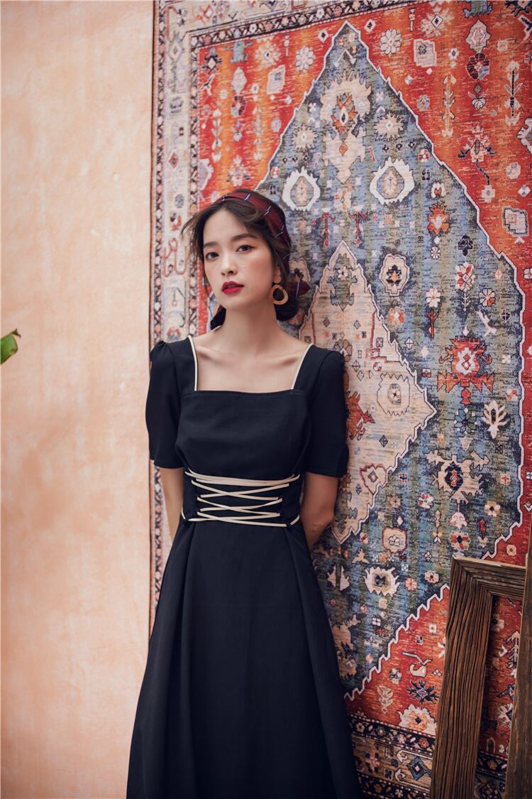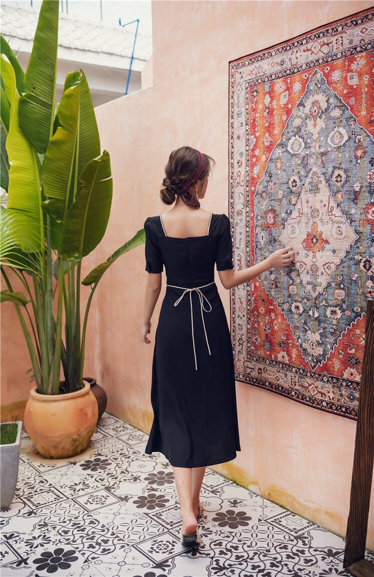 ワンピース レディース 膝下 ミモレ ミモレ丈 ミディアム丈 袖あり 半袖 5分袖 五分袖 スクエアネック ウエストマーク セミフレア Aライン 可愛い 大人可愛い きれいめ シンプル カジュアル 大人 上品 レトロ おしゃれ お洒落 かわいい ラブリー キュート 存在感 エレガント 主役級 S M L XL 黒 ブラック 青 ブルー 緑 グリーン 茶色 ブラウン 無地 春 夏 秋 10代 20代 30代 デート お出かけ 女子会 リゾート 旅行 海 トレンド オルチャン ファッション 海外 インポート