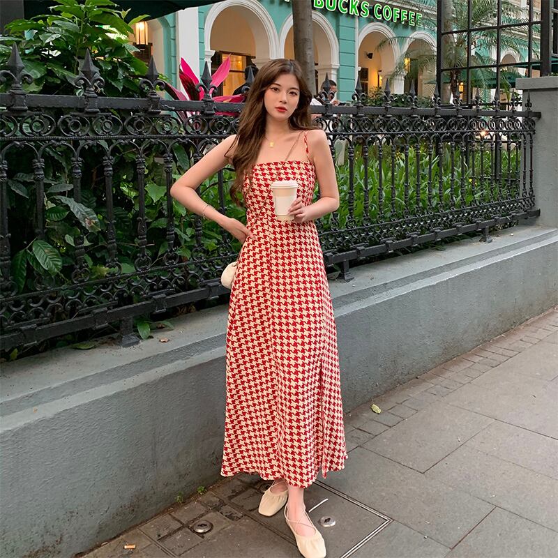ワンピース レディース フレアワンピース 大きいサイズ 黒 ブラック 赤 レッド 千鳥格子 新作 海外デザイン キャミソールワンピース ロング ロング丈 マキシ マキシ丈 スクエアネック フレア スリット 可愛い 大人可愛い きれいめ シンプル カジュアル 上品 レトロ おしゃれ お洒落 かわいい 大人女子 こなれ感 ラブリー キュート 個性的 華やか 存在感 エレガント 主役級 S M L XL 2XL 3XL 4XL 10代 20代 30代 デート お出かけ 女子会 パーティー リゾート 旅行 海