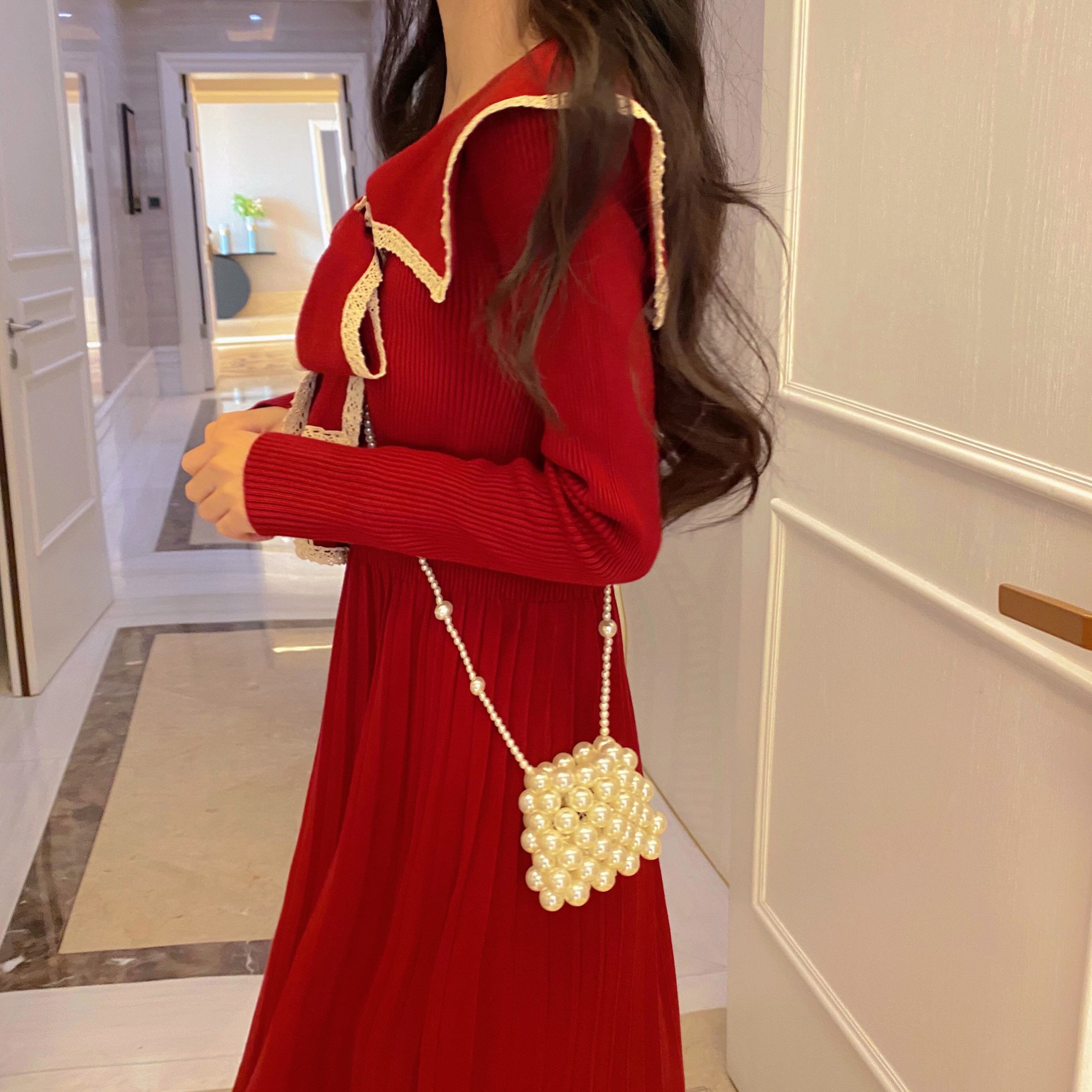 ワンピース レディース ニットワンピース セーラーカラー Aライン セーラー服風 ひざ丈 膝下 ミモレ丈 ロング丈 袖あり 長袖 襟付き プリーツ ハイウエスト リボン 可愛い 大人可愛い きれいめ カジュアル レトロ おしゃれ お洒落 かわいい フェミニン 大人女子 ラブリー キュート ガーリー 清楚 華やか 存在感 エレガント 主役級 白 ホワイト 黒 ブラック 赤 レッド 青 ブルー 緑 グリーン 無地 10代 20代 30代 オフィス ビジネス OL 通勤 学生 通学 デート お出かけ 女子会