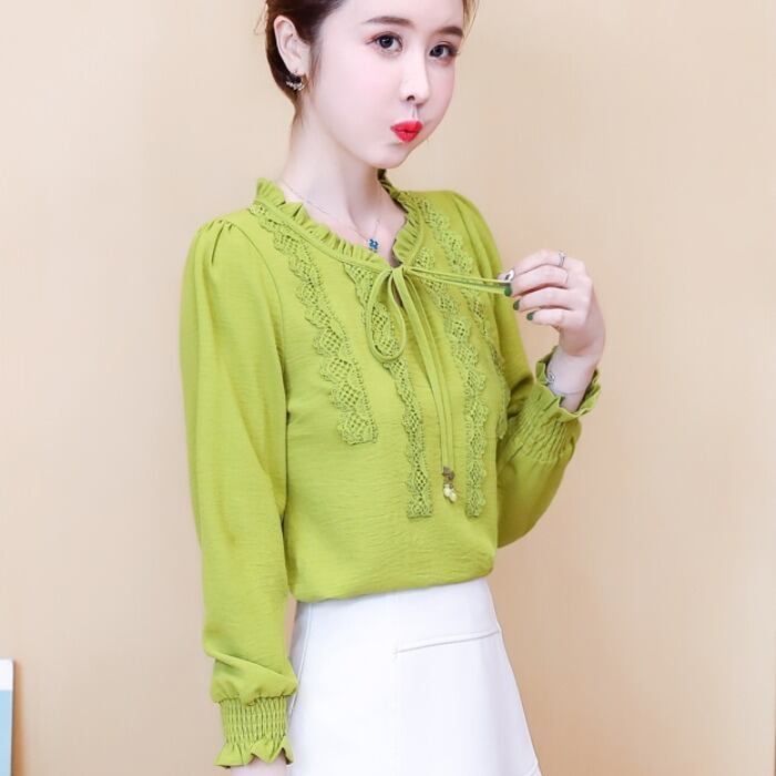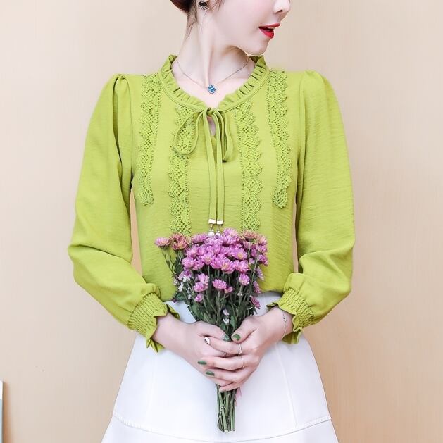 ブラウス シフォンシャツ 長袖 流行 春 ボトミングシャツ レディース トップス 新作 海外デザイン インポートファッション グリーン レッド イエロー ブラック ライトグリーン フリル リボンネクタイ シャーリング ポップ カジュアルスタイル 普段着 普段使い きれいめ 大人カラー 海外 お出かけ パーティー 二次会 飲み会 合コン 女子会 入学式 卒業式 特別な日 大人女子 かわいい クール モテ メンズライク 映える インスタ 人気デザイン 大人クール シンプル 袖口 フリル レトロスタイル