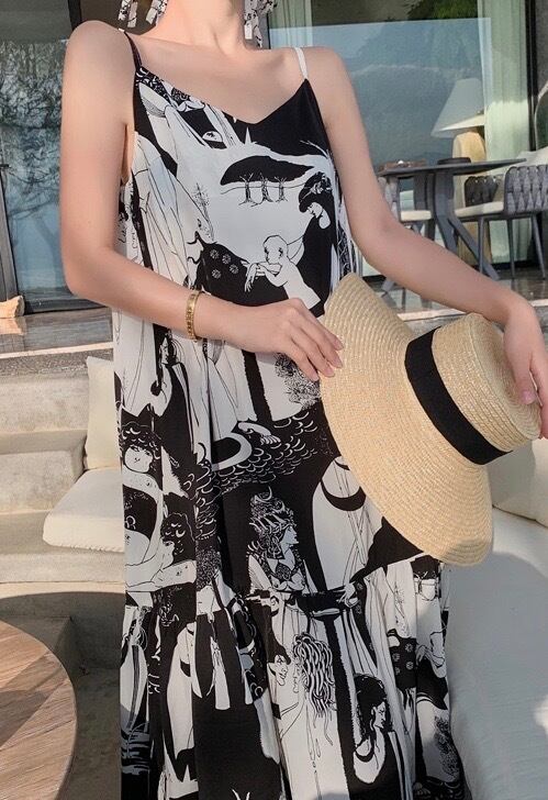 ワンピース レディース ロング丈 シフォン ロングスカート ノースリーブ 袖なし サスペンダー ビーチドレス サマードレス プルオーバー Aライン Vネック ハイウエスト お洒落 おしゃれ 可愛い かわいい フェミニン クール 大人 普段使い 大人可愛い 大人女子 おしゃれ ガーリー ラブリー キュート セクシー ゆるふわ ラフ ルーズ 抜け感 とろみ感 海外 インポート ホワイト ブラック 10代 20代 S M L XL 休日 リゾート 海 旅行 韓国ファッション トレンド 韓国コーデ オルチャン