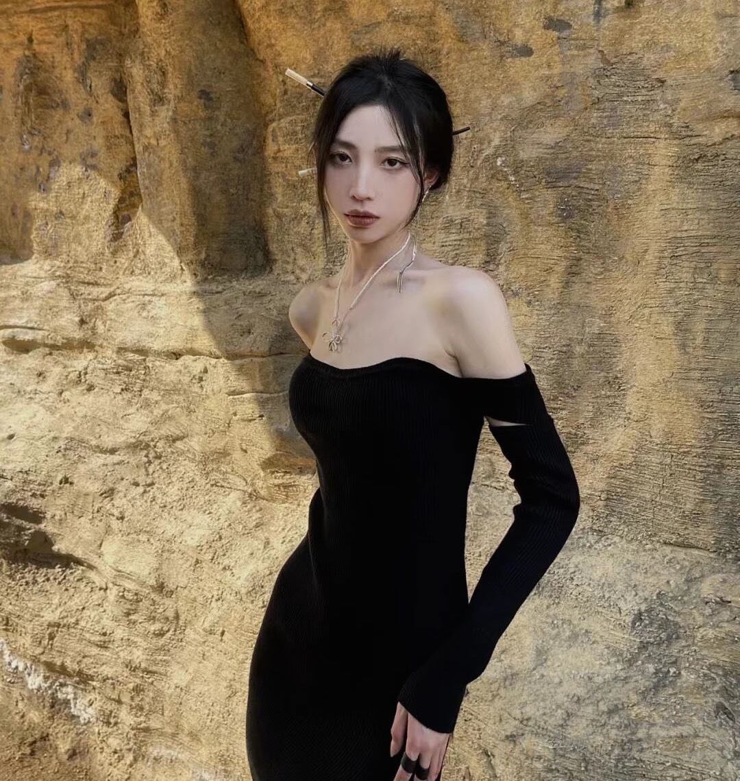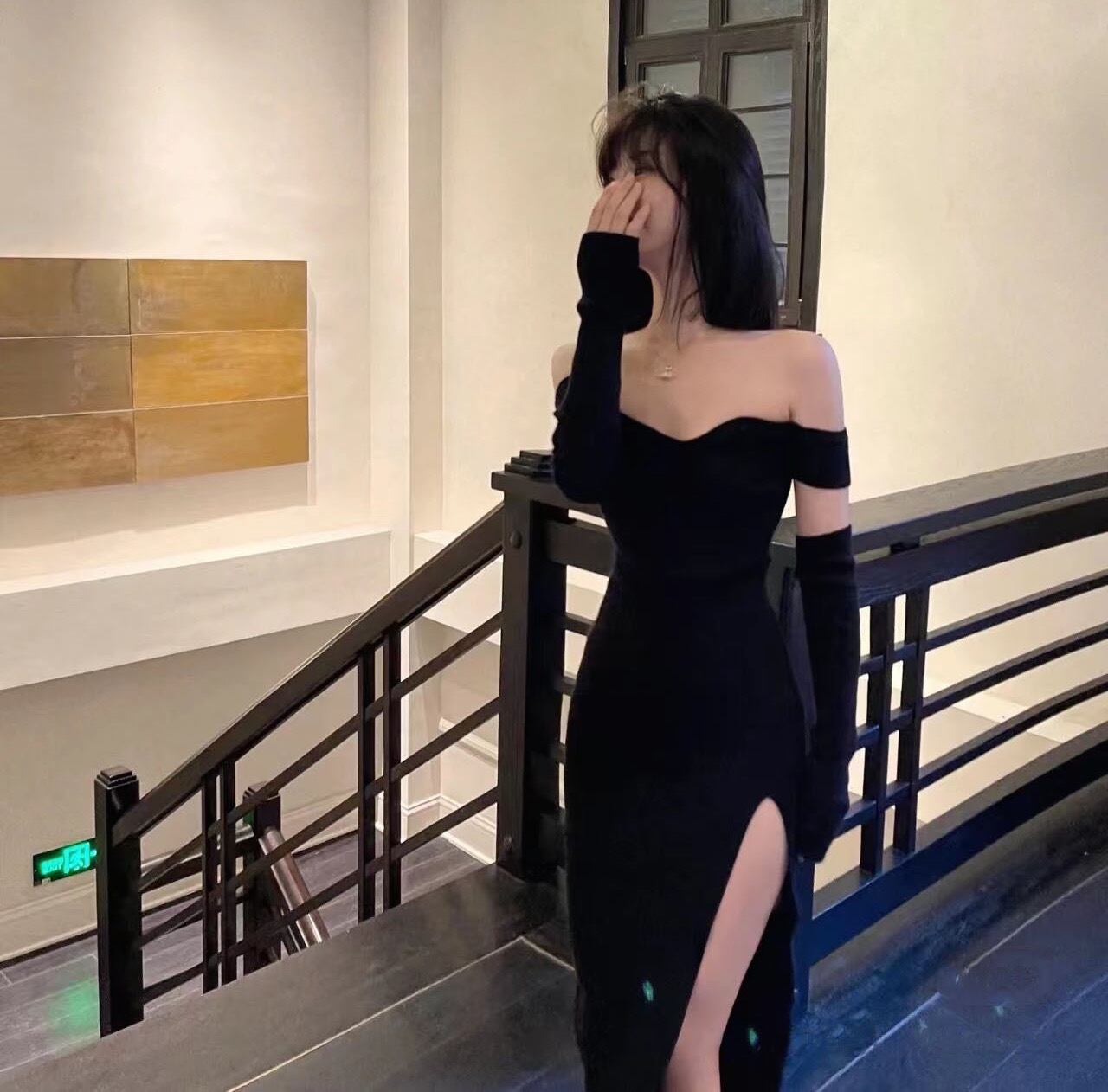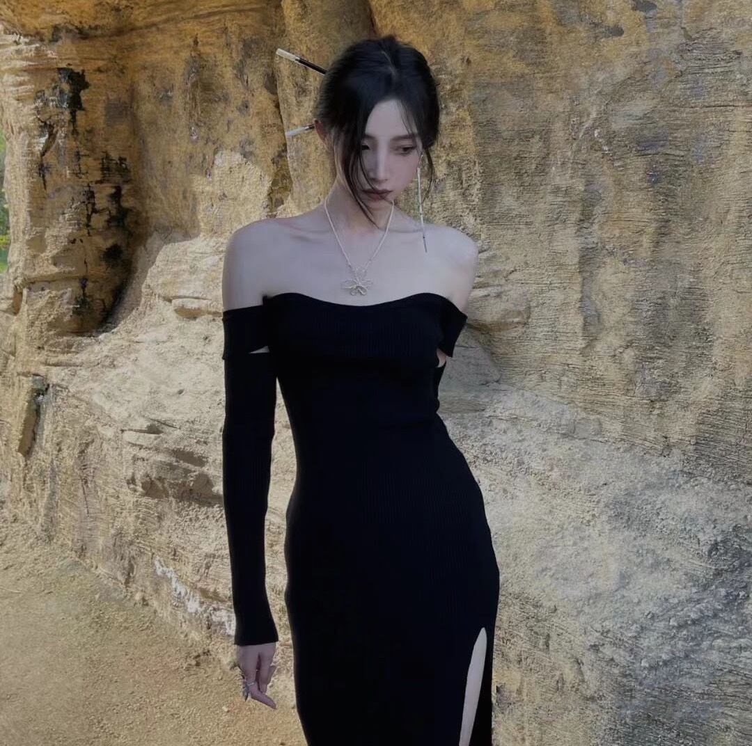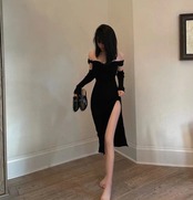 ドレス レディース パーティードレス ミドル丈 ロングスカート ニットスカート バックレス ブラック 黒 Vネック 長袖 袖あり プルオーバー タイト スリム スリット サイドスリット ハイウエスト 春 レトロ 個性的 お洒落 おしゃれ 可愛い かわいい フェミニン クール 大人 大人可愛い 大人女子 おしゃれ ガーリー ラブリー セクシー 抜け感 とろみ感 海外 インポート 20代 30代 S M L パーティー 結婚式 二次会 披露宴 謝恩会 韓国ファッション トレンド コーデ オルチャン美脚 脚長