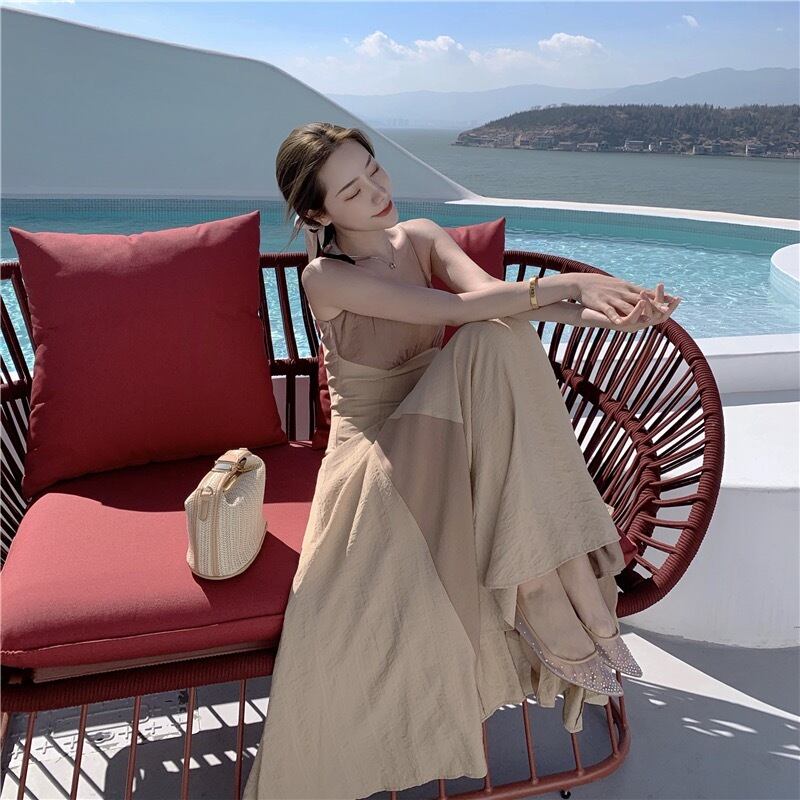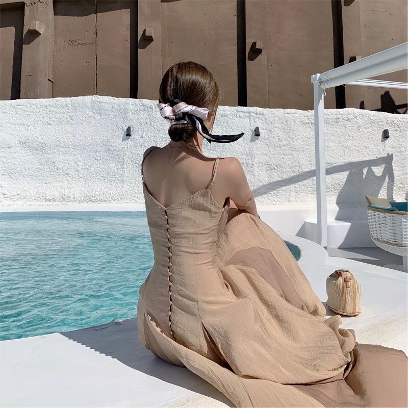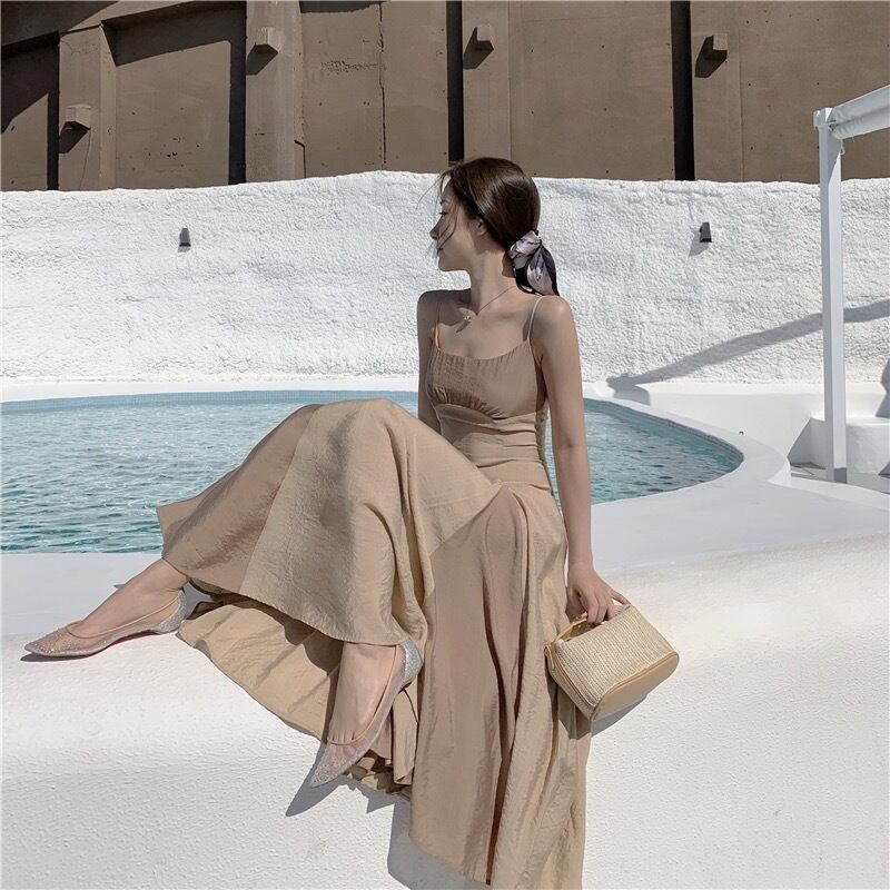 ヌードドレス ワンピース ミドル丈 ロングスカート ノースリーブ 袖なし サスペンダー ビーチドレス サマードレス ラウンドネック ジッパー ファスナー Aライン ハイウエスト 無地 シンプル お洒落 おしゃれ 可愛い かわいい フェミニン クール 大人 普段使い 大人可愛い 大人女子 おしゃれ ガーリー ラブリー キュート セクシー ゆるふわ ラフ ルーズ 抜け感 とろみ感 海外 インポート ベージュ 10代 20代 S M L XL 休日 リゾート 海 旅行 韓国ファッション トレンド オルチャン