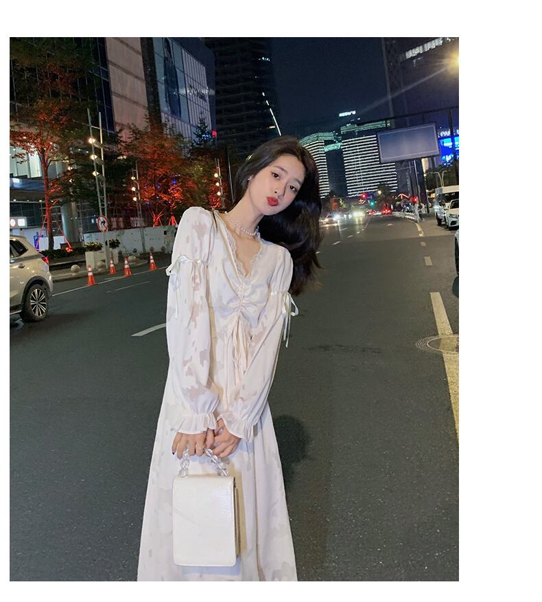 ワンピース レディース ワンピドレス フリル袖 膝下 ミモレ丈 ミディアム丈 袖あり 長袖 ボリューム袖 萌袖 Vネック フレア Aライン リボン 可愛い 大人可愛い きれいめ シンプル カジュアル おしゃれ お洒落 かわいい フェミニン 大人女子 ラブリー キュート ガーリー 清楚 華やか 存在感 とろみ感 抜け感 主役級 S M L XL 2XL アプリコット 柄 春 夏 秋 10代 20代 デート お出かけ 女子会 パーティー イベント リゾート 旅行 モテ インスタ映え 海外 インポート