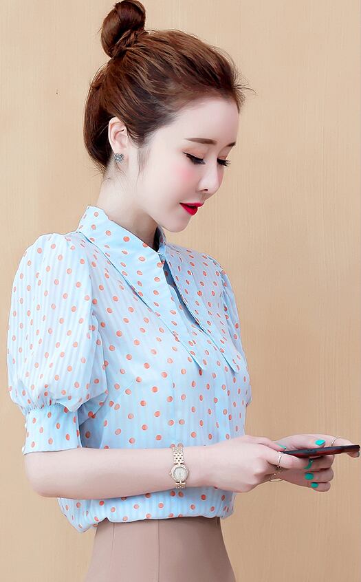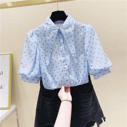 トップス レディース シャツ ブラウス ストライプ ドット 点々 青 ブルー 水色 パステルカラー ポップ 新 人気 半袖 パフスリーブ 襟付き スタンダードカラー 前開き かわいい 大人可愛い 大人 大人女子 きれいめ おしゃれ お洒落 シンプル ラブリー キュート ガーリー フェミニン 10代 20代 30代 通勤 学生 通学 デート お出かけ 女子会 休日 普段使い カジュアル こなれ感 抜け感 インスタ映え ふんわり モテ ラフ ルーズ ゆったり ゆる 春 夏 可憐 華やか パーティー イベント