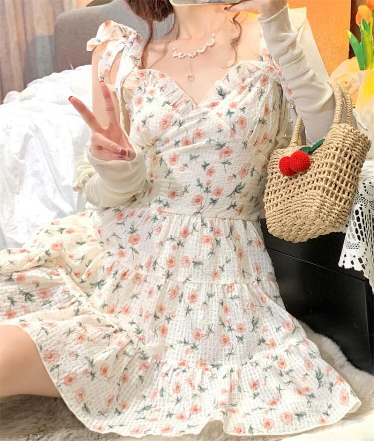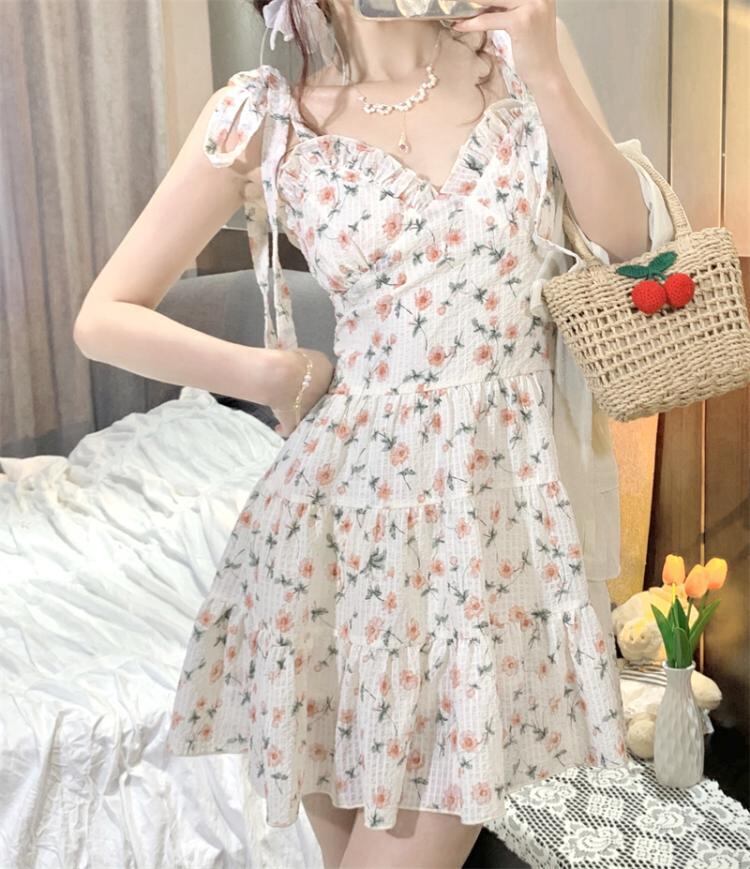 ワンピース レディース ショート丈 ショートスカート 花柄 ノースリーブ 袖なし Vネック プルオーバー Aライン ハイウエスト サスペンダー 春 秋 レトロ お洒落 おしゃれ 可愛い かわいい フェミニン クール 大人 普段使い 大人可愛い 大人女子 おしゃれ セクシー キュート ラブリー スリム 細身 抜け感 とろみ感 海外 インポート アプリコット 10代 20代 S M L XL イベント お出かけ 旅行 休日 女子会 韓国ファッション オルチャン 人気 トレンド 脚長 美脚 簡単コーデ