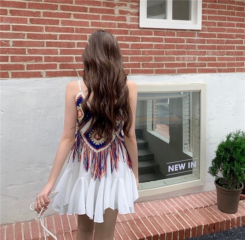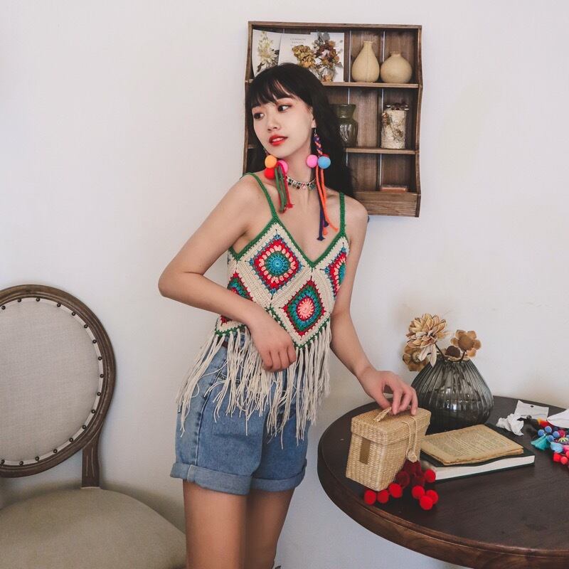 トップス レディース ベスト ノースリーブ 袖なし タッセル ニット ニットベスト エキゾチック エスニック Vネック スリムフィット スリム 細身 夏 サマー レトロ お洒落 おしゃれ 可愛い かわいい フェミニン クール 大人 普段使い 大人可愛い 大人女子 おしゃれ セクシー キュート ラブリー 抜け感 とろみ感 海外 インポート ホワイト 白 ブルー 青 グリーン 緑 10代 20代 ワンサイズ お出かけ お呼ばれ 旅行 休日 女子会 きれいめ デート カジュアル 韓国ファッション オルチャン