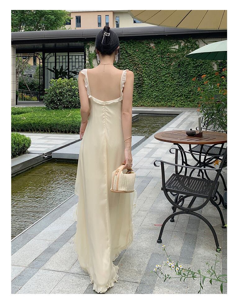 ワンピース ドレス レディース 女性用 ノースリーブ ロング丈 マキシ丈 Vネック レース フリル 重ね ジッパー チャック 薄手 ハイウエスト レトロ 大人可愛い カジュアル 大人カジュアル かわいい ガーリー おしゃれ かっこいい 大人女子 甘め メンズライク レディライク単色 オフホワイト 夏 お出かけ デート 休日 リゾート 海辺 ビーチ お呼ばれ 韓国ファッション トレンド OL 学生 10代 20代 30代 個性的 人気 シンプル ラフ こなれ感 セクシー ゆったり スリッド シースルー