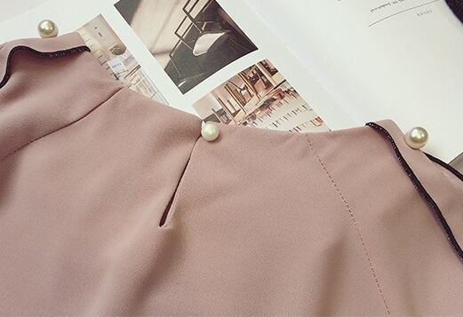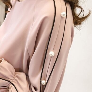 パールの飾りボタンや袖口のフリルが女性らしくてgood!!