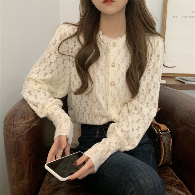 トップス レディース ブラウス 袖あり 長袖 パフスリーブ 萌袖 ラウンドネック レース 可愛い 大人可愛い きれいめ シンプル カジュアル 新作 大人 上品 レトロ おしゃれ お洒落 かわいい 大人女子 こなれ感 ラブリー キュート ガーリー 清楚 華やか 存在感 エレガント 主役級 S M L XL アプリコット 花柄 フラワー 春 秋 入学式 入園式 卒業式 卒園式 二次会 謝恩会 10代 20代 30代 オフィス ビジネス OL 通勤 学生 通学 デート お出かけ 女子会 パーティー イベント