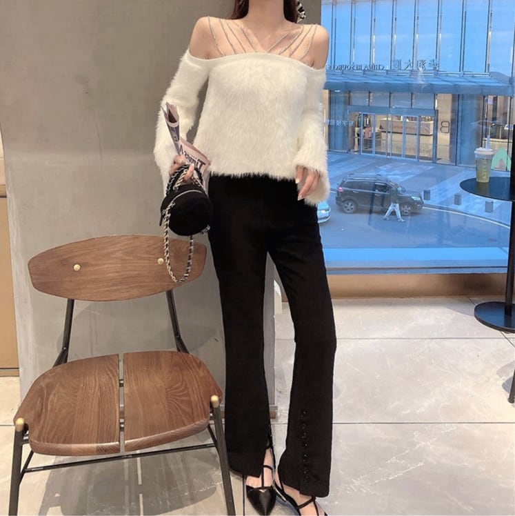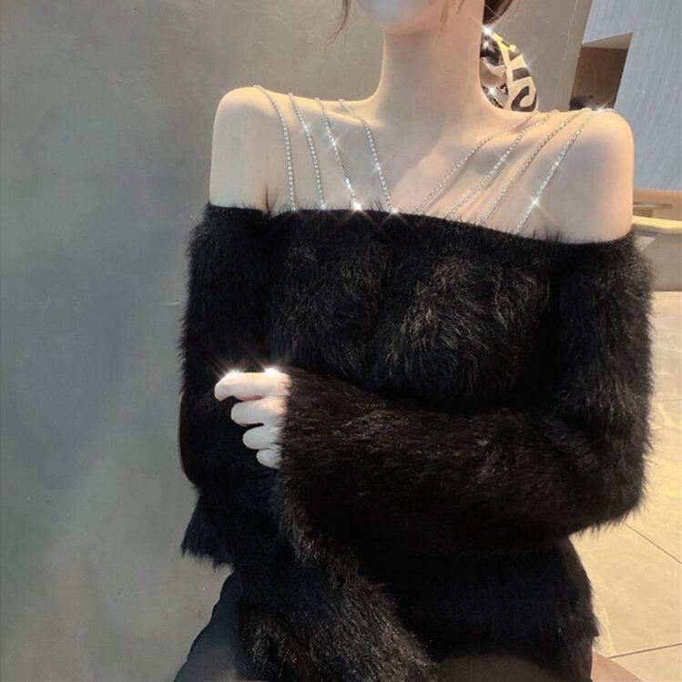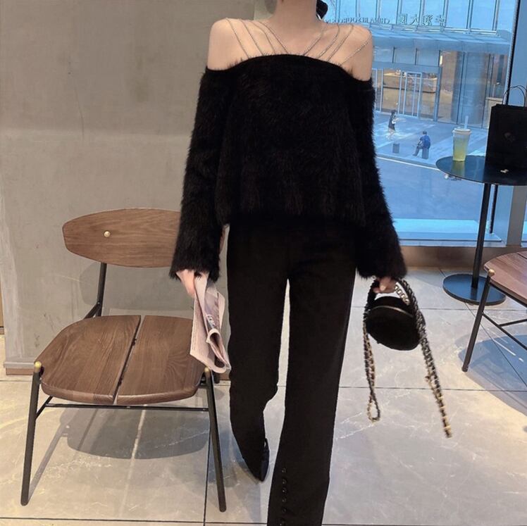 トップス レディース セーター 長袖 袖あり ウール ウールセーター ワンショルダー オフショルダー 無地 プルオーバー チェーン ルーズ オーバーサイズ ゆったり 秋 レトロ お洒落 おしゃれ 可愛い かわいい フェミニン クール 大人 普段使い シック 大人可愛い 大人女子 おしゃれ セクシー キュート ラブリー 抜け感 とろみ感 海外 インポート ホワイト 白 ブラック 黒 20代 30代 旅行 休日 女子会 きれいめ デート お呼ばれ パーティー イベント 韓国ファッション オルチャン 人気