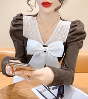 人気のパフスリーブと大きなリボンが特徴的な長袖シャツ。