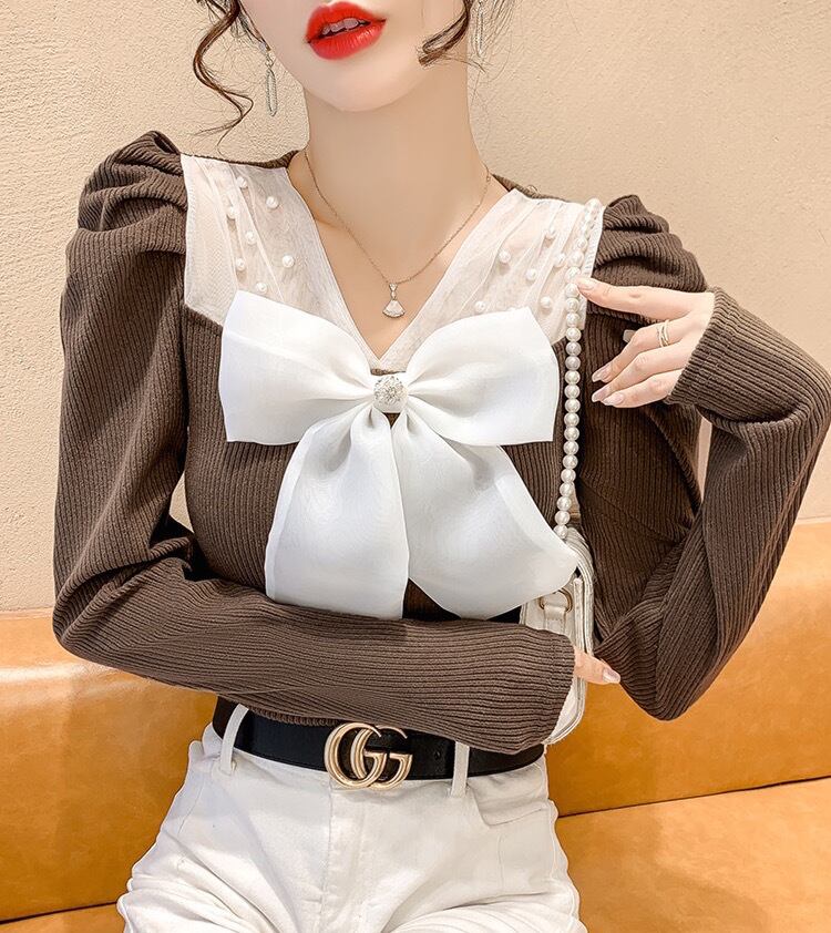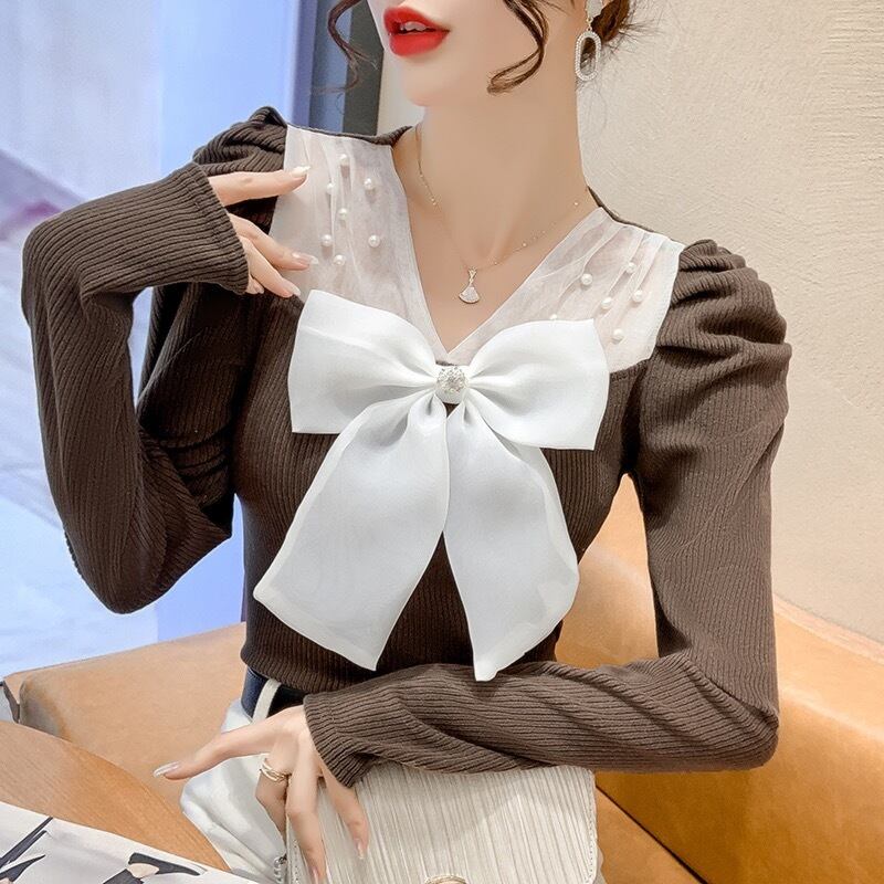 トップス レディース シャツ リボンネクタイ パフ袖 パフスリーブ 新作 長袖 Vネック ステッチ リボン ゆるふわ 春 レトロ お洒落 おしゃれ 可愛い かわいい フェミニン クール 大人 普段使い シック 大人可愛い 大人女子 おしゃれ セクシー キュート ラブリー 抜け感 とろみ感 海外 インポート ブラウン 茶色 ブラック 黒 ホワイト 白 20代 30代 お呼ばれ 結婚式 披露宴 二次会 フォーマル パーティー 女子会 きれいめ デート 韓国ファッション オルチャン 人気 トレンド 韓国コーデ