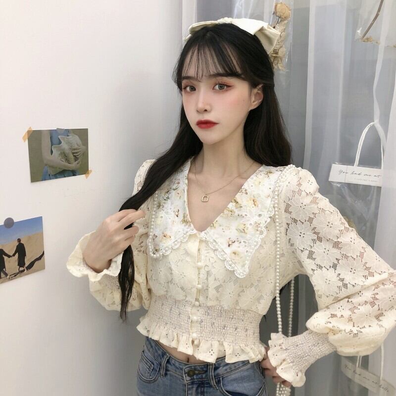 トップス レディース ブラウス ショート丈 白トップス 袖あり 長袖 萌袖 Vネック レース フリル ウエストマーク ボタン 透け感 可愛い 大人可愛い きれいめ 上品 レトロ おしゃれ お洒落 かわいい 大人女子 ラブリー キュート ガーリー 個性的 清楚 華やか 存在感 主役級 ロリータ カジュアル S M L 白 ホワイト 花柄 花柄 フラワー 春 夏 10代 20代 学生 通学 デート お出かけ 公園デビュー 女子会 イベント リゾート 旅行 着回し インスタ映え インポート