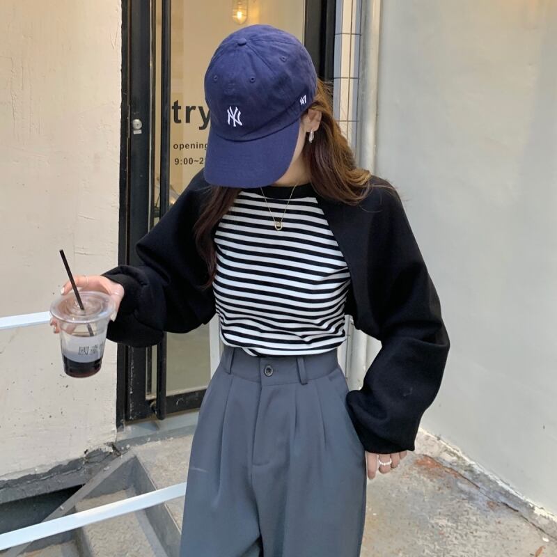 トップス レディース ストライプ 袖あり 長袖 ボリューム袖 襟なし Uネック ラウンドネック ドッキング フェイクレイヤード モノトーン 白 ホワイト 黒 ブラック かわいい 大人可愛い 大人 大人女子 きれいめ おしゃれ お洒落 シンプル ラブリー キュート ガーリー フェミニン 10代 20代 30代 通勤 学生 通学 デート お出かけ 女子会 休日 普段使い カジュアル こなれ感 抜け感 個性的 ラフ ルーズ ゆったり ゆる ぶかぶか 大きめ インパクト メンズライク マニッシュ ボーイッシュ