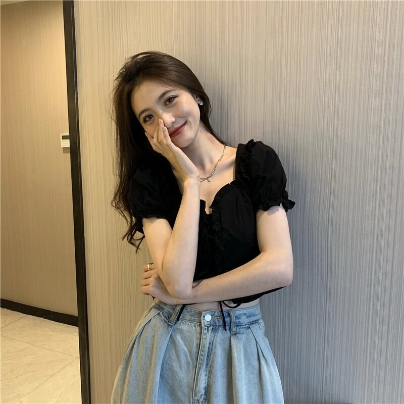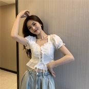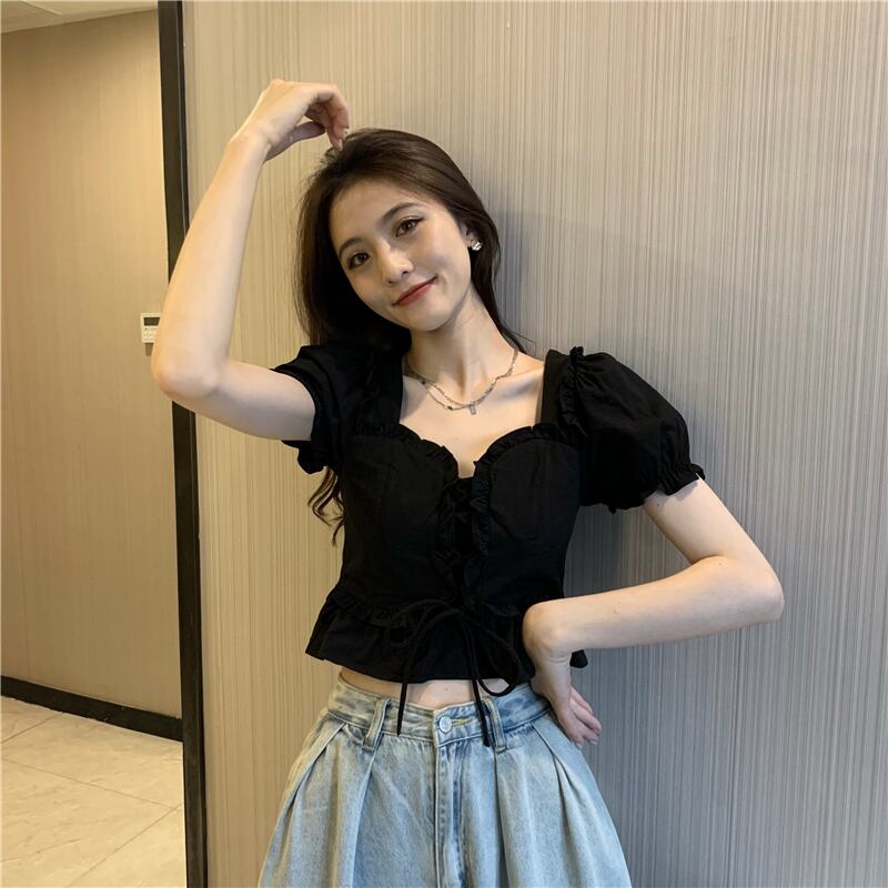 パフスリーブ 半袖 Tシャツ あみあみ ブラックカラー ホワイトカラー 黒 白 スクエアネック レディース ショート丈 フリル使い シャーリング 新作 海外デザイン インポートファッション おしゃれ シンプル きれいめ カジュアルスタイル 普段着 ラクチン デイリー使い 着回し 重ね着 ラクチンコーデ プチプラ 映える 買い物 ショッピング デート インポート 海外デザイン 外国風 人気デザイン 大人かわいい 外出 お出かけ 女子会 学生 OL 通勤 アルバイト 見栄え トレンディ トレンド デート