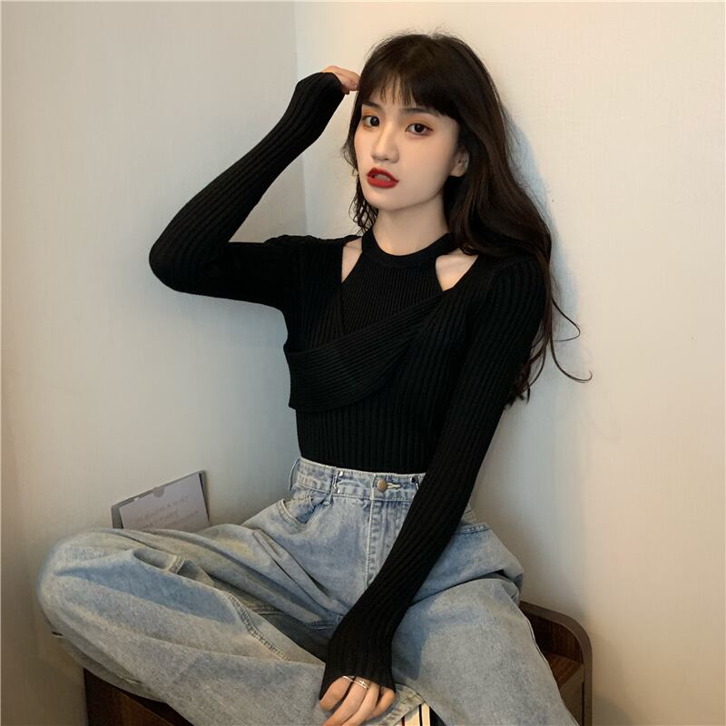 セットアップ レディース キャミソール ニット ホルターネック プルオーバー セーター 袖あり 長袖 襟なし リブ デコルテ アシンメトリー 白 ホワイト アプリコット 青 ブルー 黒 ブラック 茶色 ブラウン コーヒー かわいい 大人可愛い 大人 大人女子 きれいめ おしゃれ お洒落 シンプル ラブリー キュート ガーリー フェミニン 10代 20代 30代 通勤 学生 通学 デート お出かけ 女子会 休日 普段使い カジュアル こなれ感 抜け感 ラフ ルーズ ゆったり ゆる セクシー インパクト