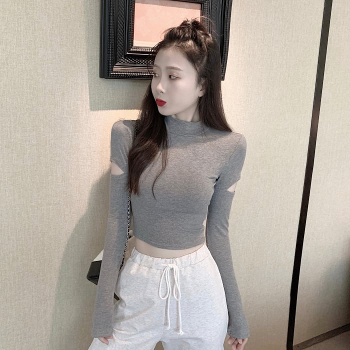 トップス ロンティー 袖長め アームホールシャツ 海外デザイン 長袖 ハイネック オープンショルダー 灰色 グレー 黒 ブラック 白 ホワイト モノトーン ジャージ 部屋着 かわいい 大人可愛い 大人 大人女子 きれいめ おしゃれ お洒落 シンプル ラブリー キュート ガーリー フェミニン 10代 20代 30代 学生 通学 デート お出かけ 女子会 休日 普段使い カジュアル こなれ感 抜け感 スリム タイト 細身 ラフ ルーズ ゆったり ゆる 運動 ジム ルームウエア セクシー シック イベント