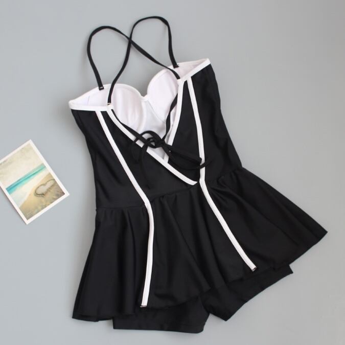 スカート風ワンピース水着 女性用 スイムウエアー スイムスーツ レディース水着 ショートパンツ付き ブラック 新作 シンプル デザイン重視 人気デザイン ギャザー水着 オシャレ トレンド トレンディ 大人かわいい ブラックホワイト シック トレンド水着 海外デザイン インポートファッション インスタ映え 映える プール 海 バーベキュー イベント 行動派 旅行 海外旅行 リゾートファッション プチプラ ランキング キュート お勧め 大人きれい きれいめ アクティブ かっこいい 白黒 モダン プールサイド