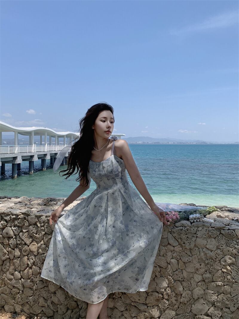 ワンピース ドレス レディース 女性用 カラードレス ノースリーブ キャミソール ロング丈 マキシ丈 薄手 Aラインスカート レトロ 大人可愛い カジュアル 大人カジュアル かわいい ガーリー おしゃれ かっこいい 大人女子 甘め メンズライク レディライク レース リボン 花柄 フラワー 青 ブルー 白 ホワイト 夏 お出かけ デート 休日 リゾート 海辺 お呼ばれ 韓国ファッション トレンド OL 学生 10代 20代 30代 個性的 人気 シンプル ラフ こなれ感 透け感 シースルー ハイウエスト