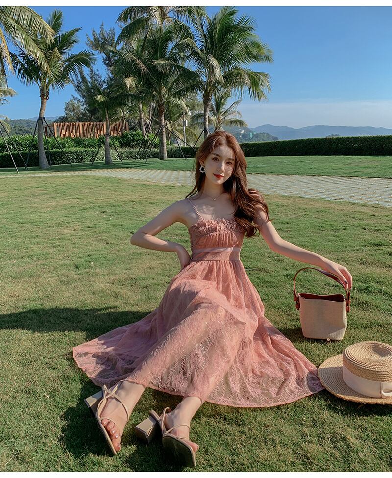 ワンピース ドレス レディース 女性用 ノースリーブ キャミソール ロング丈 膝下丈 薄手 ジッパー チャック Aラインスカート レース フリル レトロ 大人可愛い カジュアル 大人カジュアル かわいい ガーリー おしゃれ かっこいい 大人女子 甘め メンズライク レディライク 刺繡 単色 桃 ピンク 夏 お出かけ デート 休日 リゾート お呼ばれ 韓国ファッション トレンド OL 学生 10代 20代 30代 個性的 人気 エレガンス シンプル ラフ こなれ感 透け感 シースルー ハイウエスト