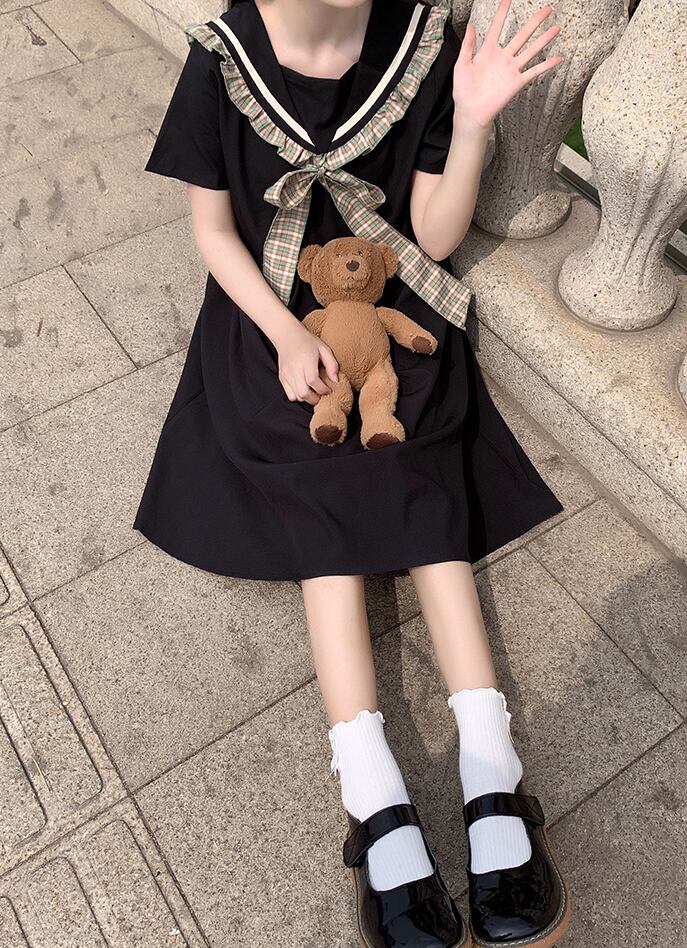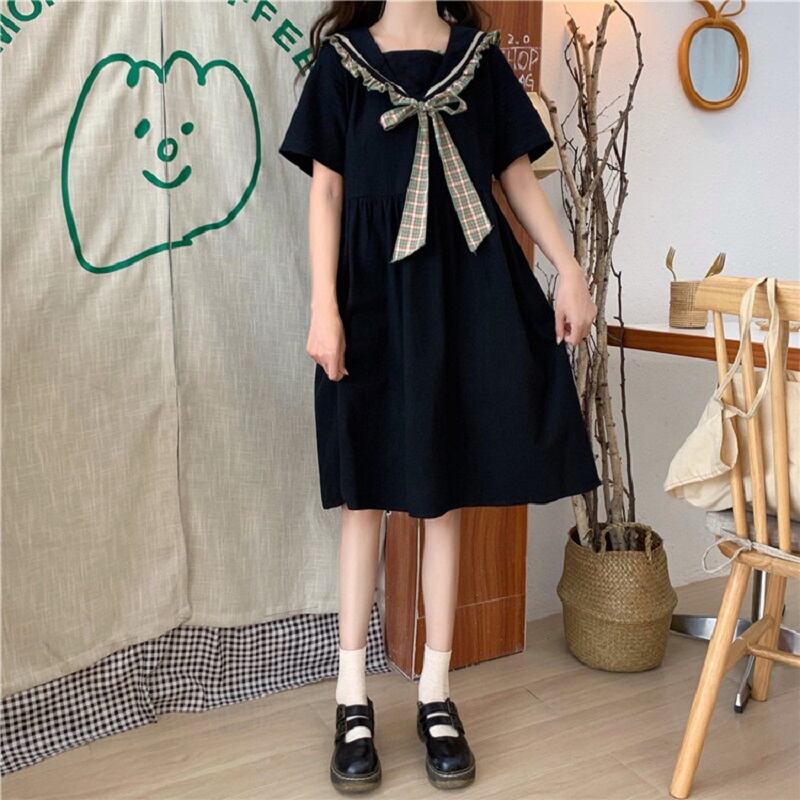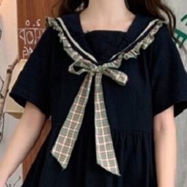 ワンピース レディース カレッジスタイル ひざ丈 半袖 セーラーカラー セーラー服 制服 学校 チェック柄 ワイド リボン フリル 縁取り 黒 ブラック かわいい 大人可愛い 大人 大人女子 きれいめ おしゃれ お洒落 シンプル ラブリー キュート ガーリー フェミニン 10代 20代 学生 通学 デート お出かけ 女子会 休日 普段使い カジュアル こなれ感 抜け感 個性的 存在感 モテ 体型カバー 楽ちん ワイド パーティー イベント ラフ ルーズ ゆったり ゆる 上品 エレガント 可憐 インパクト