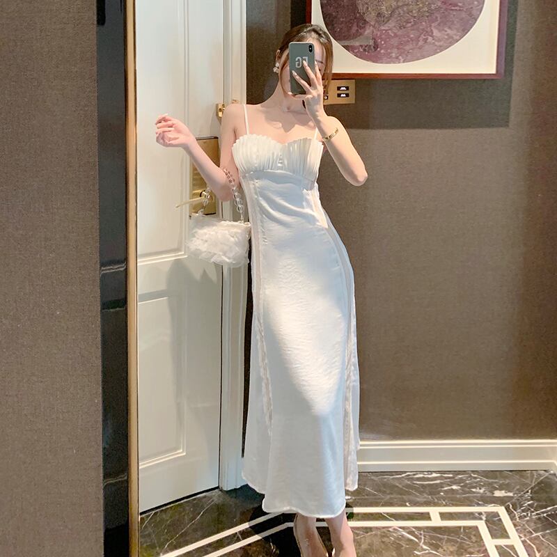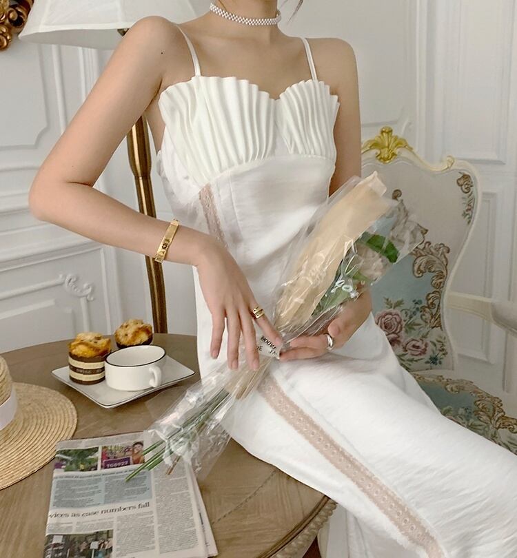 ワンピース ドレス レディース 女性用 ノースリーブ キャミソール 調節 薄手 ロング丈 マキシ丈 ハイウエスト レトロ 大人可愛い カジュアル 大人カジュアル かわいい ガーリー おしゃれ かっこいい 大人女子 甘め メンズライク レディライク 貝殻 シェル プリーツ フリル レース 刺繡 単色 白 ホワイト 夏 お出かけ デート 休日 リゾート お呼ばれ エレガント 韓国ファッション トレンド OL 学生 10代 20代 30代 個性的 人気 シンプル ラフ こなれ感 タイト セクシー シースルー