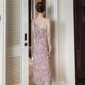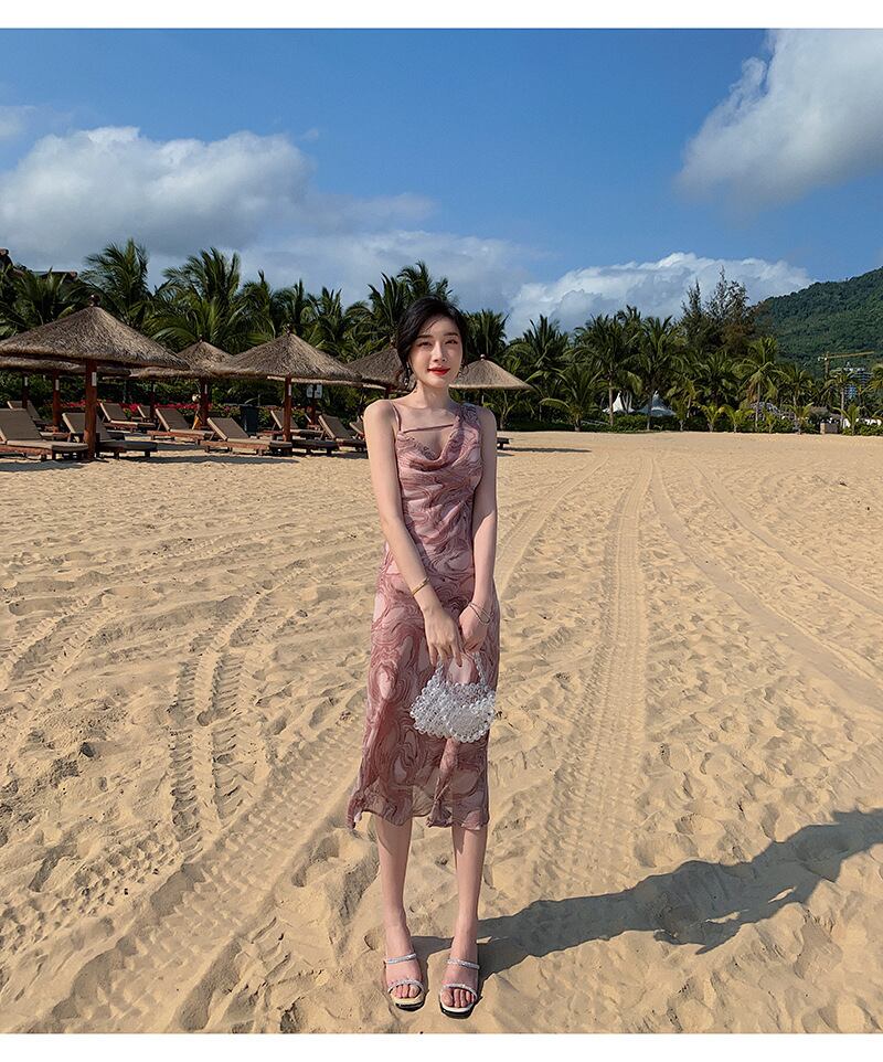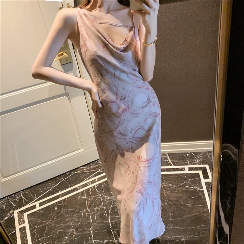 ワンピース ドレス レディース 女性用 ノースリーブ キャミソール ストラップ 薄手 Vネック ロング丈 マキシ丈 左右非対称 アシンメトリー ハイウエスト レトロ 大人可愛い カジュアル 大人カジュアル かわいい ガーリー おしゃれ かっこいい 大人女子 甘め メンズライク レディライク マーブル模様 ピンク 夏 お出かけ デート 休日 リゾート お呼ばれ エレガント 韓国ファッション トレンド OL 学生 10代 20代 30代 個性的 人気 シンプル ラフ こなれ感 タイト セクシー シースルー