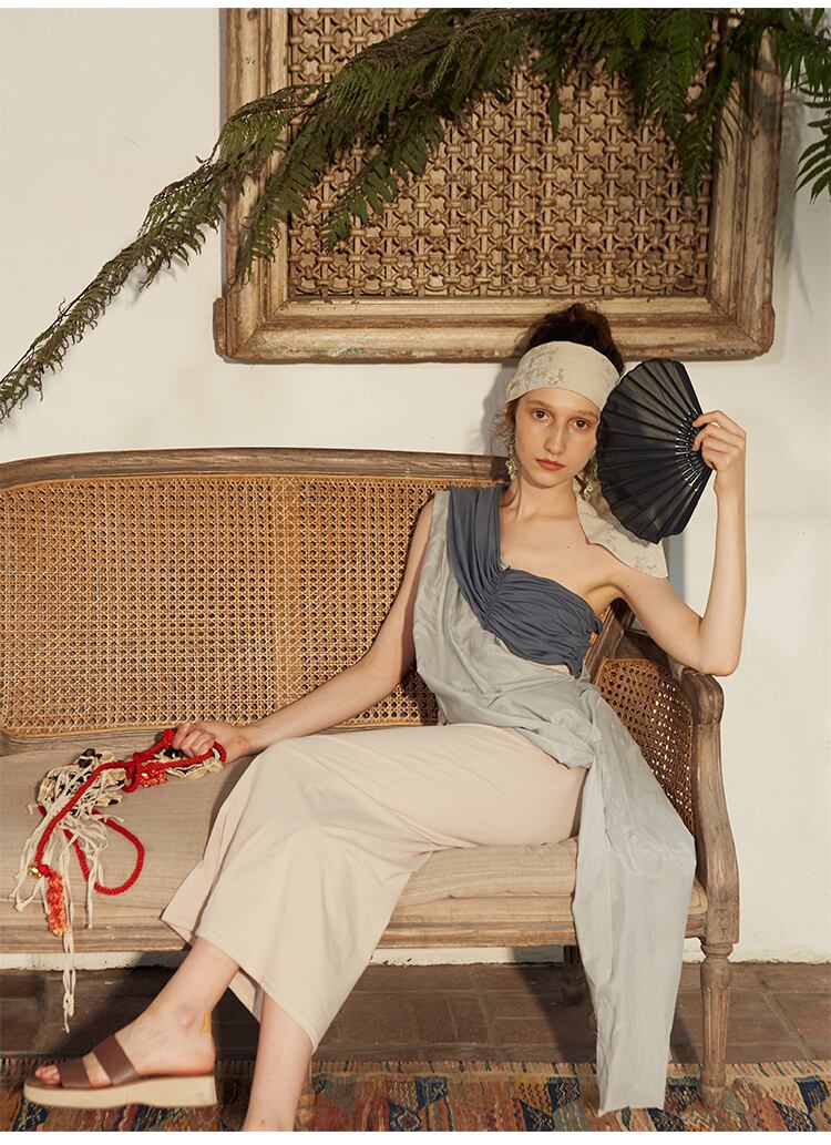 ワンピース ドレス レディース 女性用 ノースリーブ オフショルダー Vネック 薄手 ロング丈 膝下丈 左右非対称 アシンメトリー レトロ シック 大人可愛い カジュアル 大人カジュアル かわいい ガーリー おしゃれ かっこいい 大人女子 甘め メンズライク レディライク 青 ブルー グレー ライトブルー くすみカラー 夏 お出かけ デート 休日 リゾート お呼ばれ エレガント 韓国ファッション トレンド OL 学生10代 20代 30代 個性的 人気 シンプル ラフ こなれ感 スリッド タイト セクシー