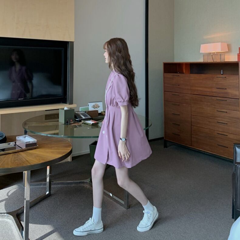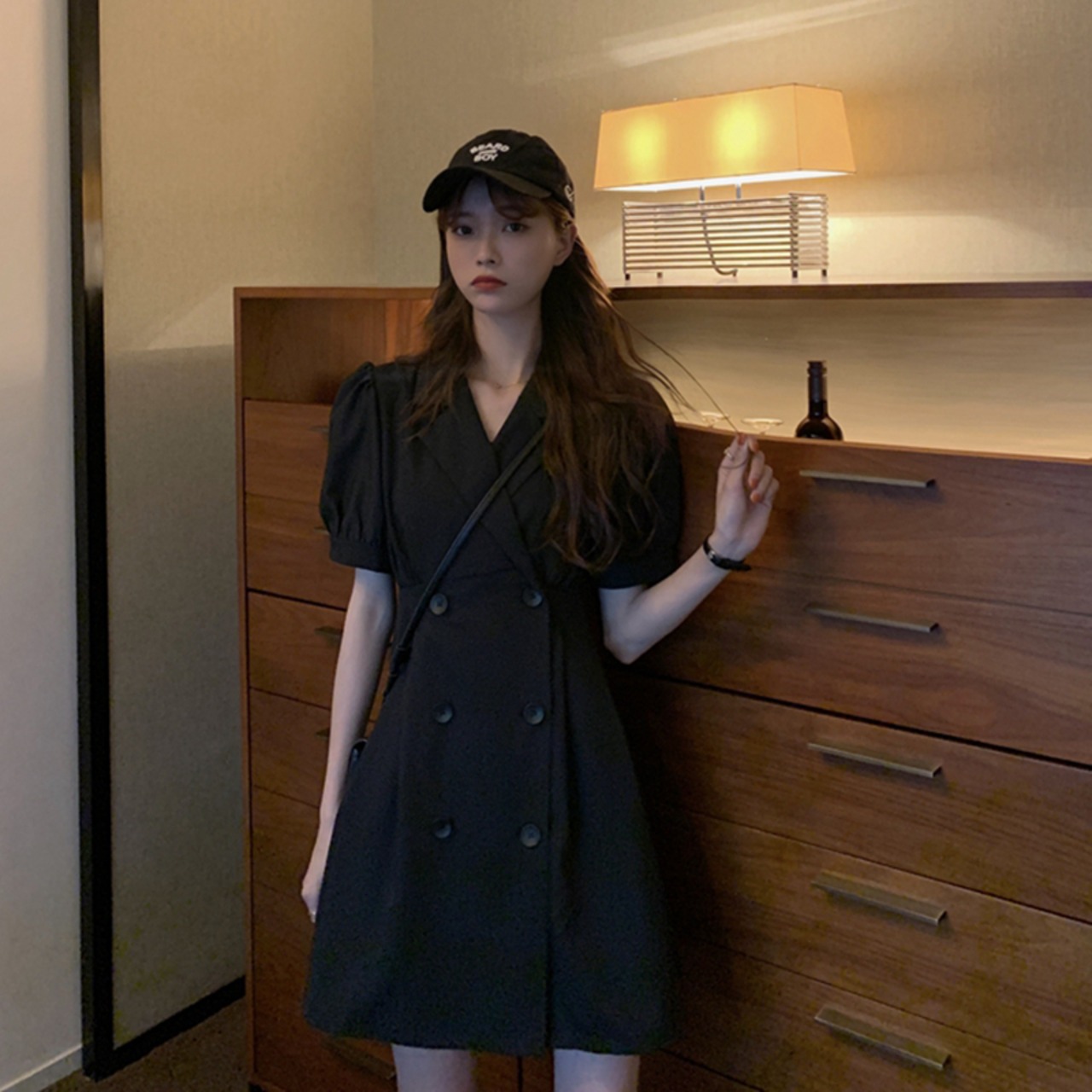 ミニワンピ 半袖 レディース ダブルボタン ハイウエスト パフスリーブ 膝上丈 襟付き テーラードカラー 無地 単色 通勤 通学 おしゃれ トレンド ティーンズワンピ 学生 デート ショッピング お食事 ランチ 夏ワンピ 定番 着まわせる 人気 10代 20代 きちんと感 セミフレア 清潔感 ウエスト切り替え Aライン 韓国ファッション 韓国 インポート 低価格 お買い得 プチプラ 高見え 好感度アップ サイズ豊富 ゆったり 簡単コーデ M L XL 2XL 3XL 4XL 可愛い 大人可愛い クール