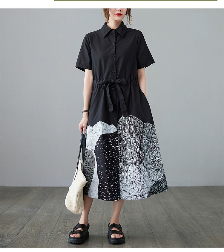 ワンピース ワンピドレス 手書き風プリント アート系 モダン 半袖 ミドル丈 サマーファッション レトロ風デザイン 今風 夏 婦人服 新作ドレス ルーズ フォーリンスタイル 半袖シャツスカート シャツスカート かわいい 大人可愛い 大人 大人女子 きれいめ お出かけ おススメ お呼ばれ 外出 イベント パーティーワンピース 人気デザイン10代 20代 30代 通勤 学生 通学 デート お出かけ 女子会 休日 普段使い カジュアル モテ リゾート プール こなれ感 ラフ ルーズ 抜け感 ゆったり ゆる