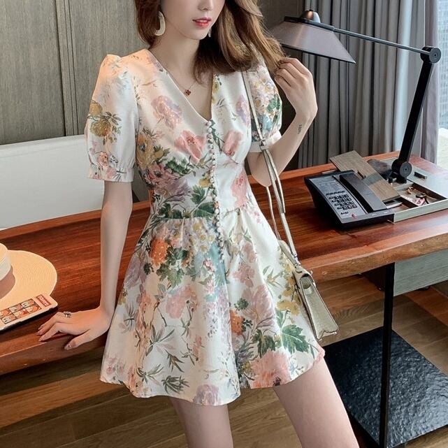 オールインワン ドレスパンツ ショート丈 フレア 人気デザイン 花柄 フラワープリント ショート丈 インポートファッション ショートパンツ Vネック ホワイト 白 S M L XL フラワー 花 ボタニカル セレブ ミニ丈 セクシー キャバ 夜 上品 甘辛 キュート かわいい 大人可愛い おしゃれ レトロ 主役級 存在感 女性用 学生 デート お出かけ 女子会 パーティ 休日 韓国 韓国系 オルチャン ファッション 10代 20代 夏 コーデ スタイル プチプラ リゾート 大人可愛い 個性的 ガーリー