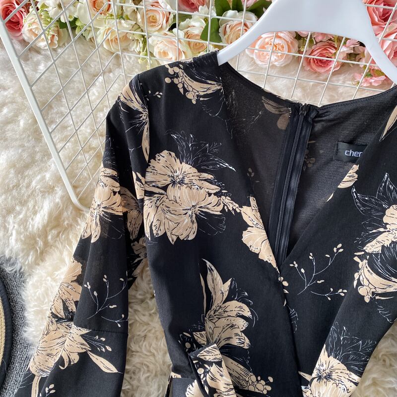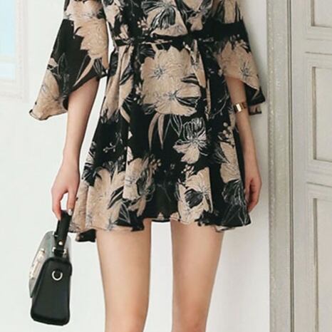 ワンピース ワンピドレス 花柄 ショート丈 新作 夏 レトロ Vネック シフォンプリント ドレス トランペットスリーブ ウエストリボン ハイウエスト スリム 夏ワンピース サマータイム サマーファッション トレンディ トレンド 流行 今風 カジュアルスタイル 新しい コントラストカラー マッチング レングスライト フレンチスカート こなれ感 キュート かわいい 個性的 存在感 20代 10代 30代 レディース オフィス ビジネス OL 通勤 学生 学校 通学 ファッション コーデ S M L XL